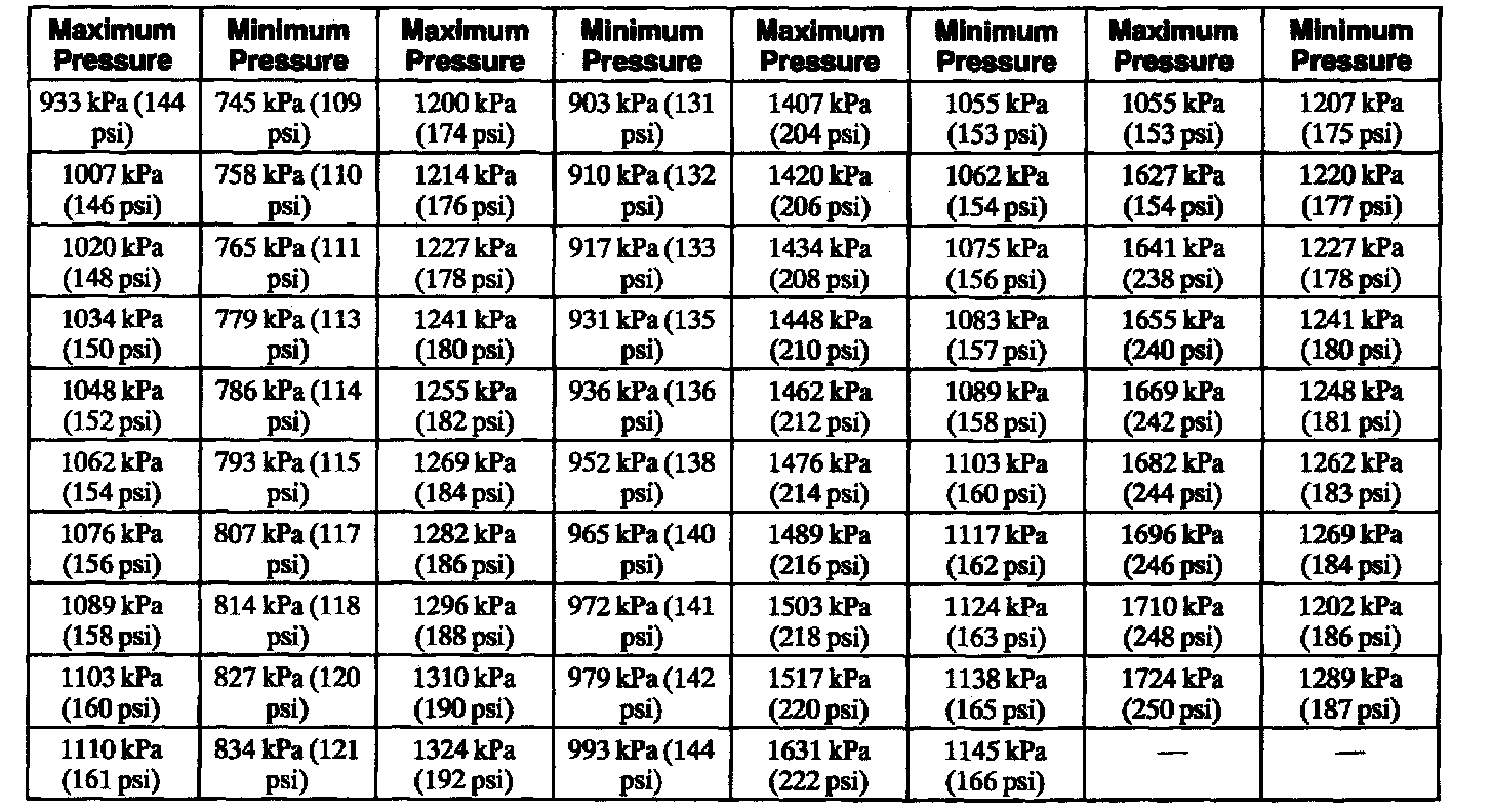 The indicated compression pressures are considered within specification if the lowest reading cylinder is within 75 percent of the highest reading. Refer to the Compression Pressure Limit Chart.