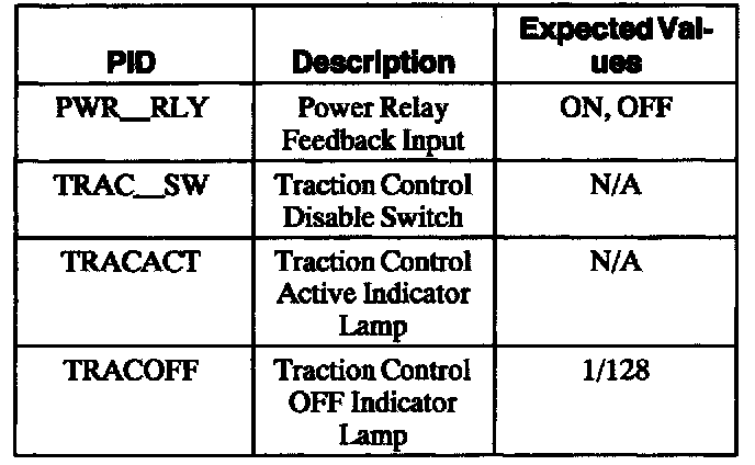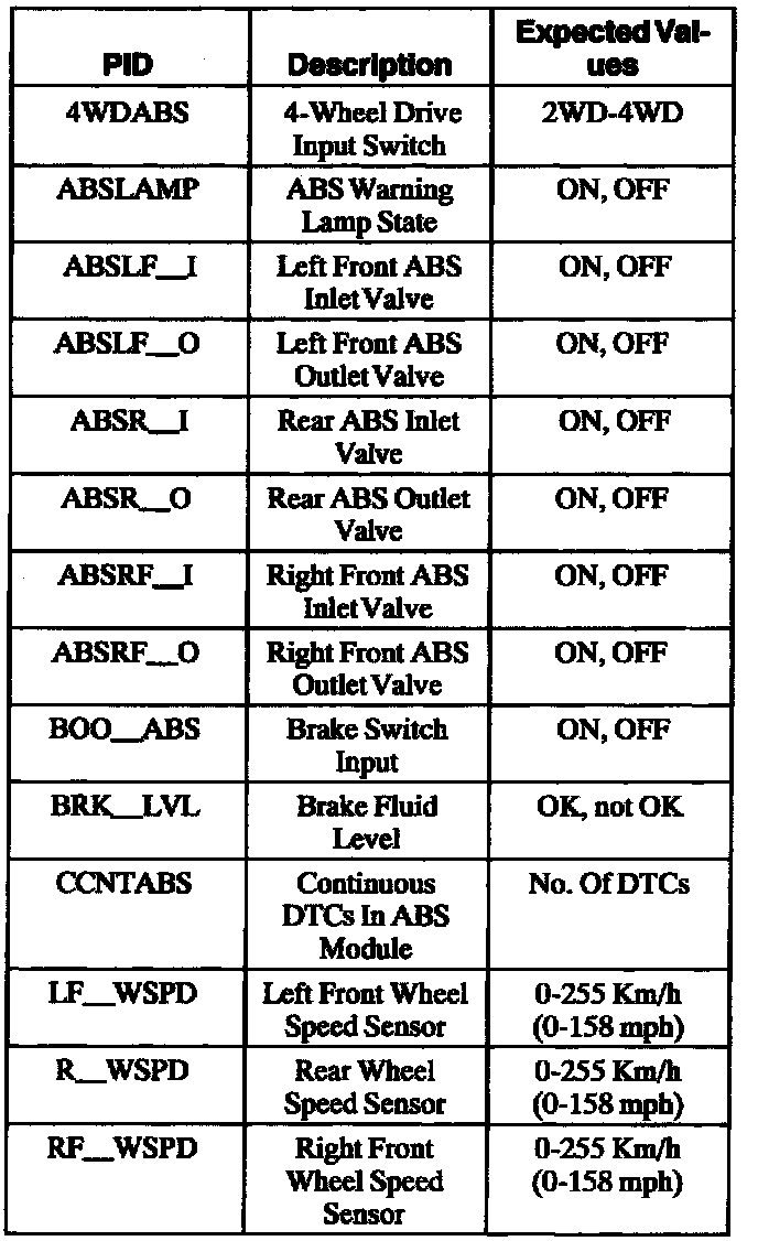 ABS Control Module Parameter Identification (PID) Index