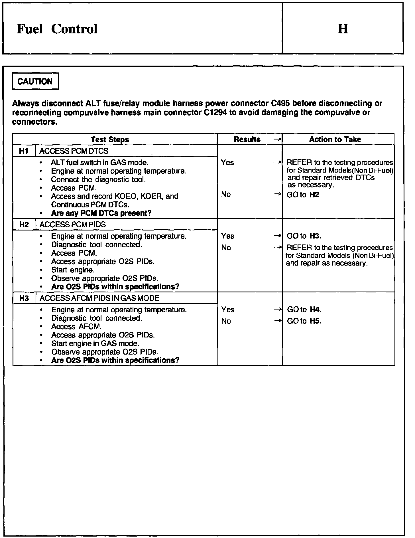 Test H: Fuel Control