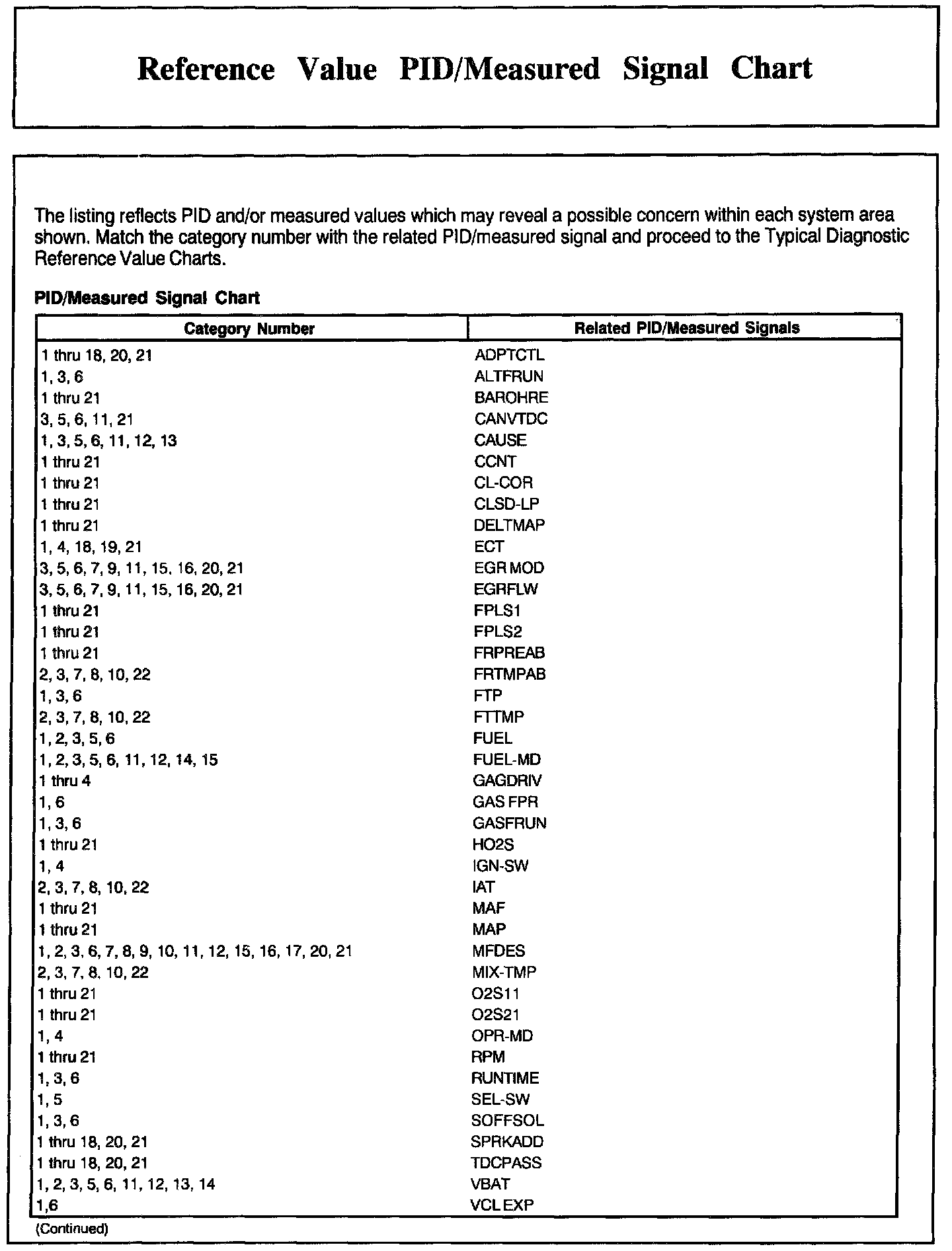 Normal Scan Data Values - Includes PIDs