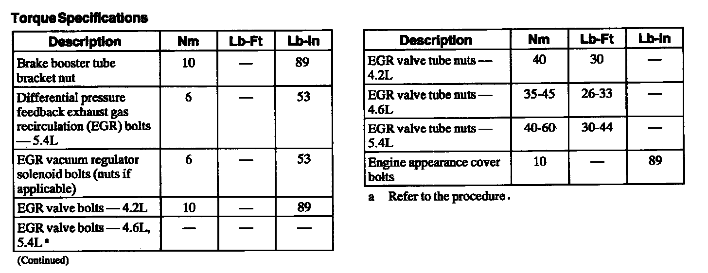 Torque Specifications: