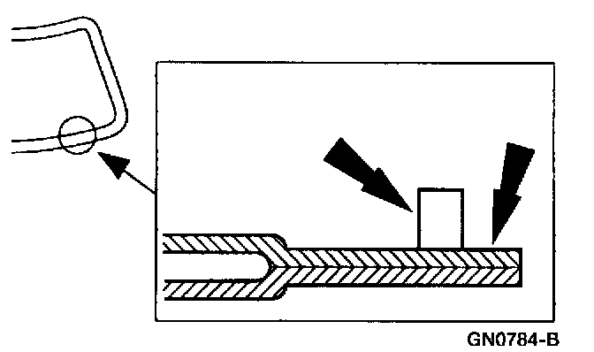 10. Apply a bead of Urethane Adhesive Essex 400 HV or Essex U-216 meeting Ford specification WSB-M2G316-B to the pinch weld just outside the foam dam.