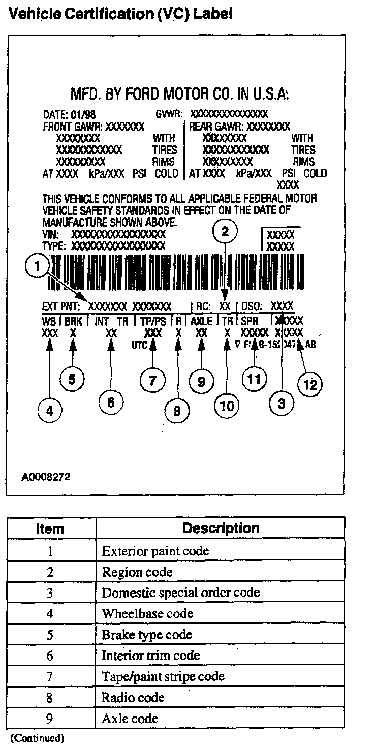 Vehicle Certification (VC) Label, Part 1:
