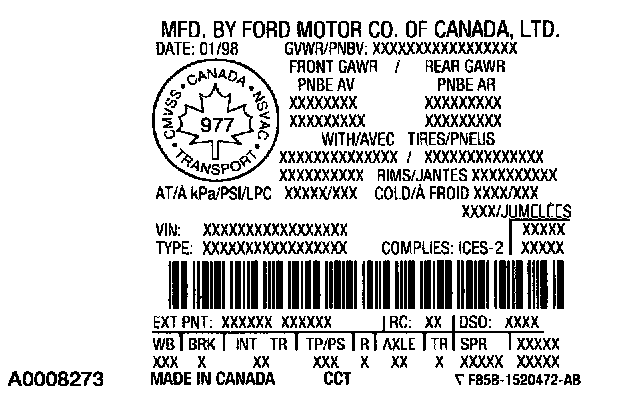 VEHICLE CERTIFICATION (VC) LABEL REFERENCE