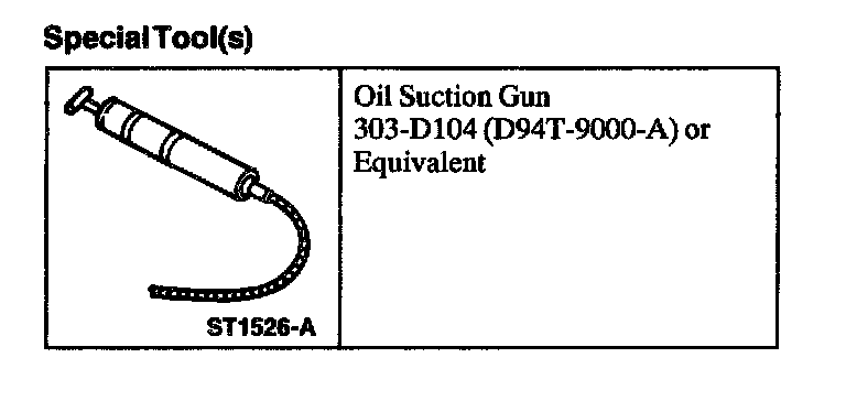 2. Remove the plug. Using special tool 303-D104 (D94T-9000-A) draw the oil from the high-pressure oil pump reservoir.