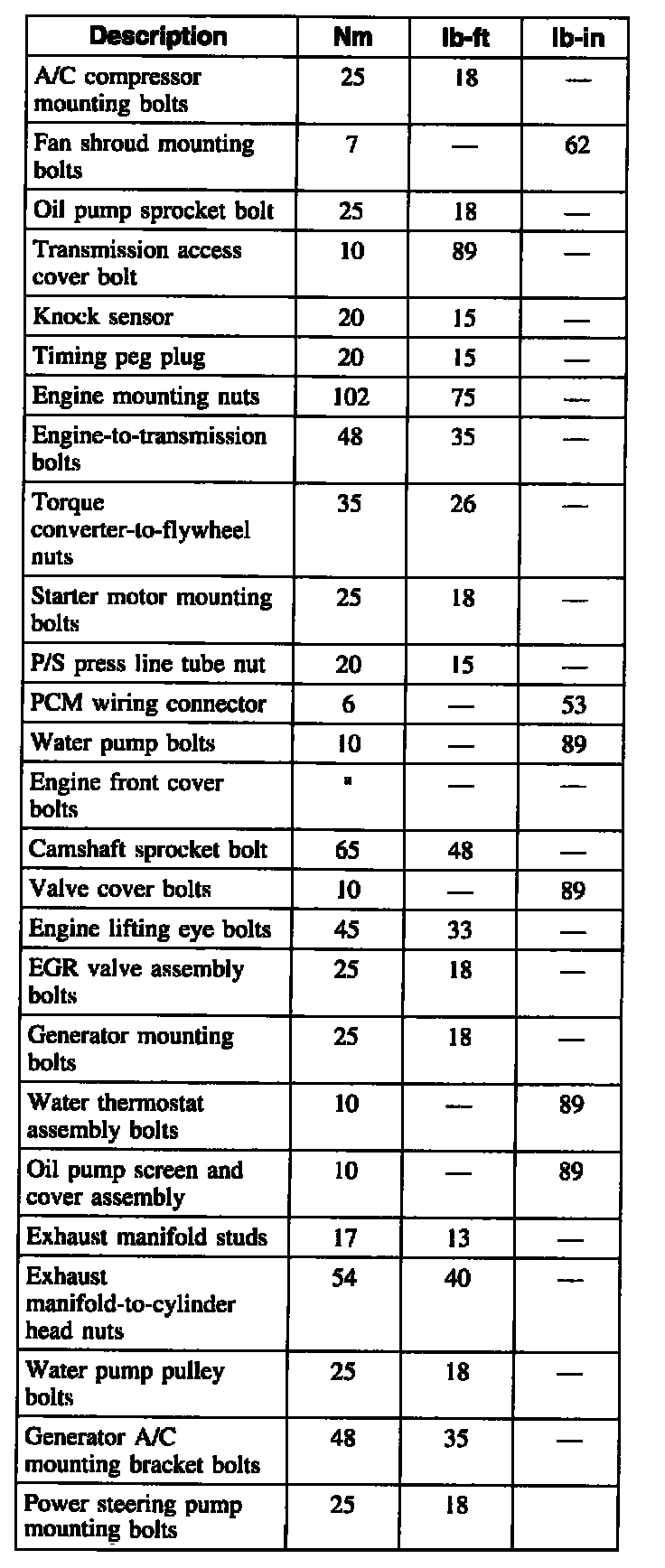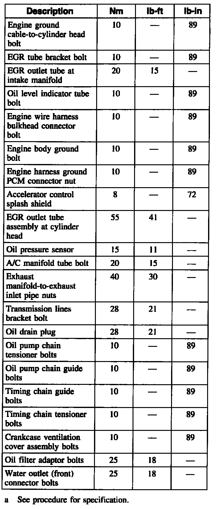Exhaust manifold-to-cylinder head nuts 54 Nm (40 ft. lbs.)
