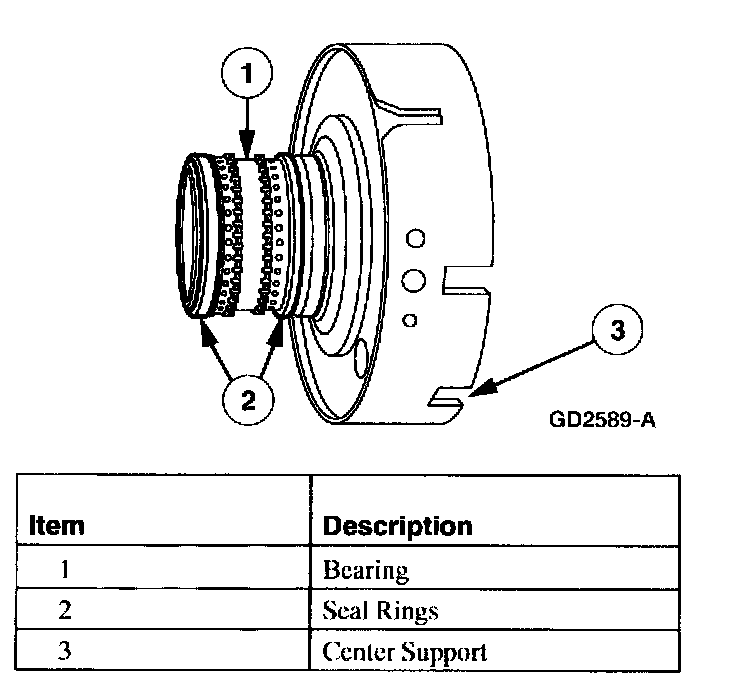NOTE: The center support is serviced as an assembly. Any damage requires installation of a new component.