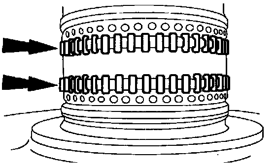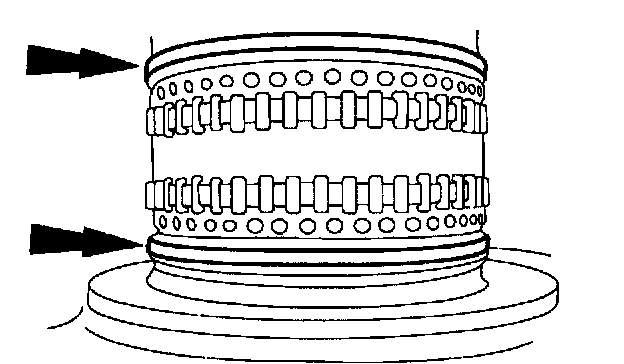 8. Inspect the front pump outer race for scoring or nicks. If any damage is found installation of a new pump assembly will be needed.