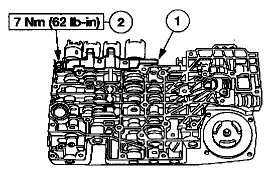 2. CAUTION: The torque converter clutch solenoid (TCC) solenoid may pop out of its bore. This may damage the solenoid.