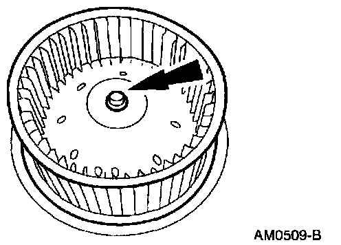 6. Remove the retaining clip and the blower motor wheel from the blower motor.