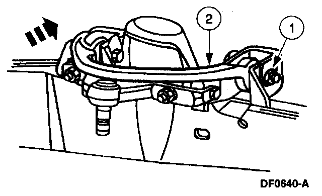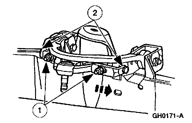 3. NOTE: A pry bar can be used between the front suspension arm bushing joint and the frame pocket to aid in moving the arm.