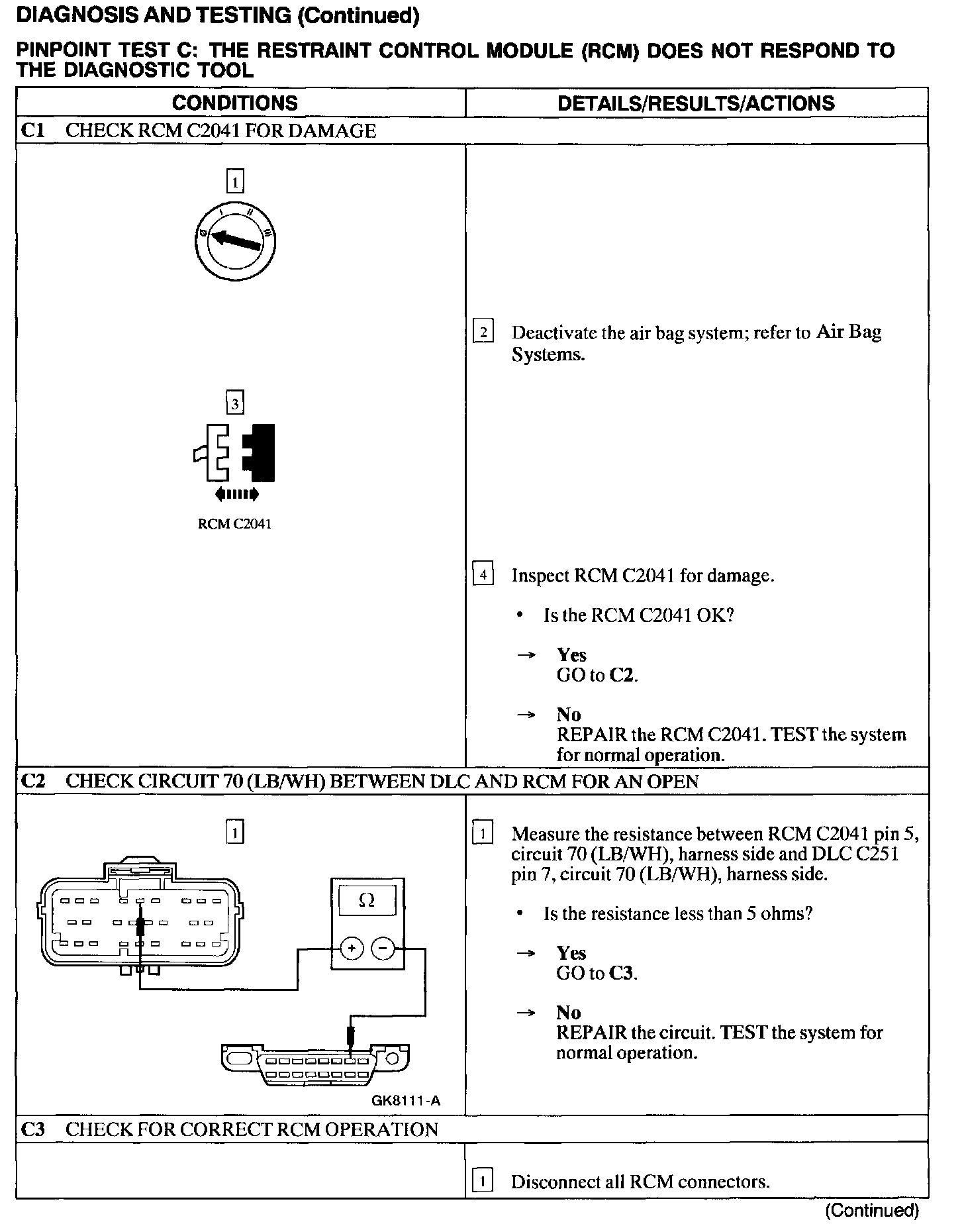 Test C: RCM Does Not Respond to Scan Tool