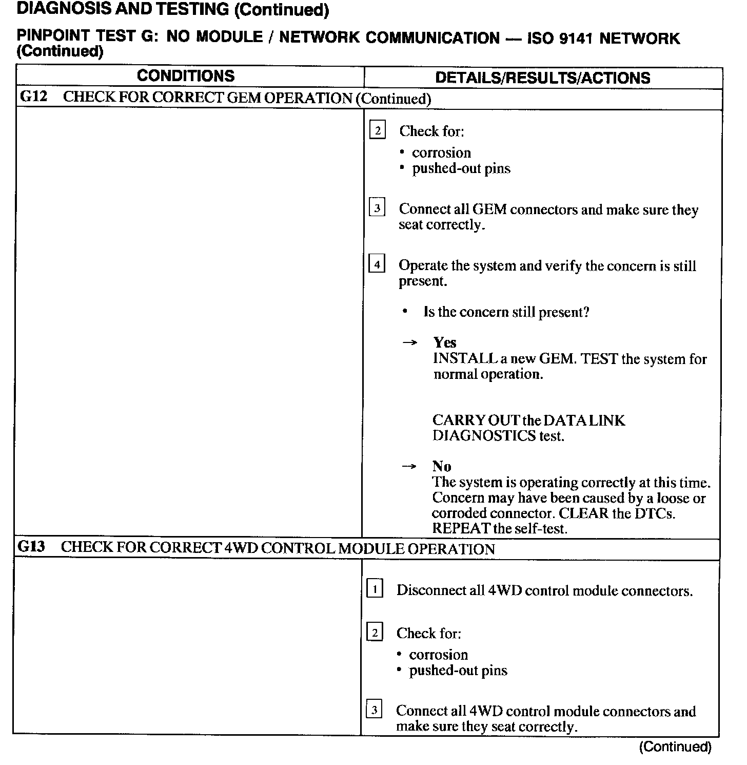Test G: No Module/Network Communication - ISO 9141 Network