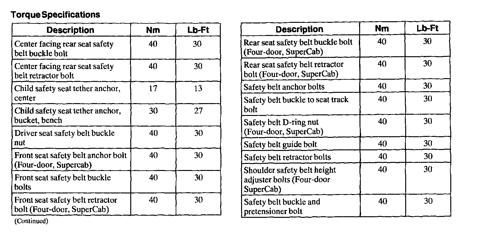 Torque Specifications: