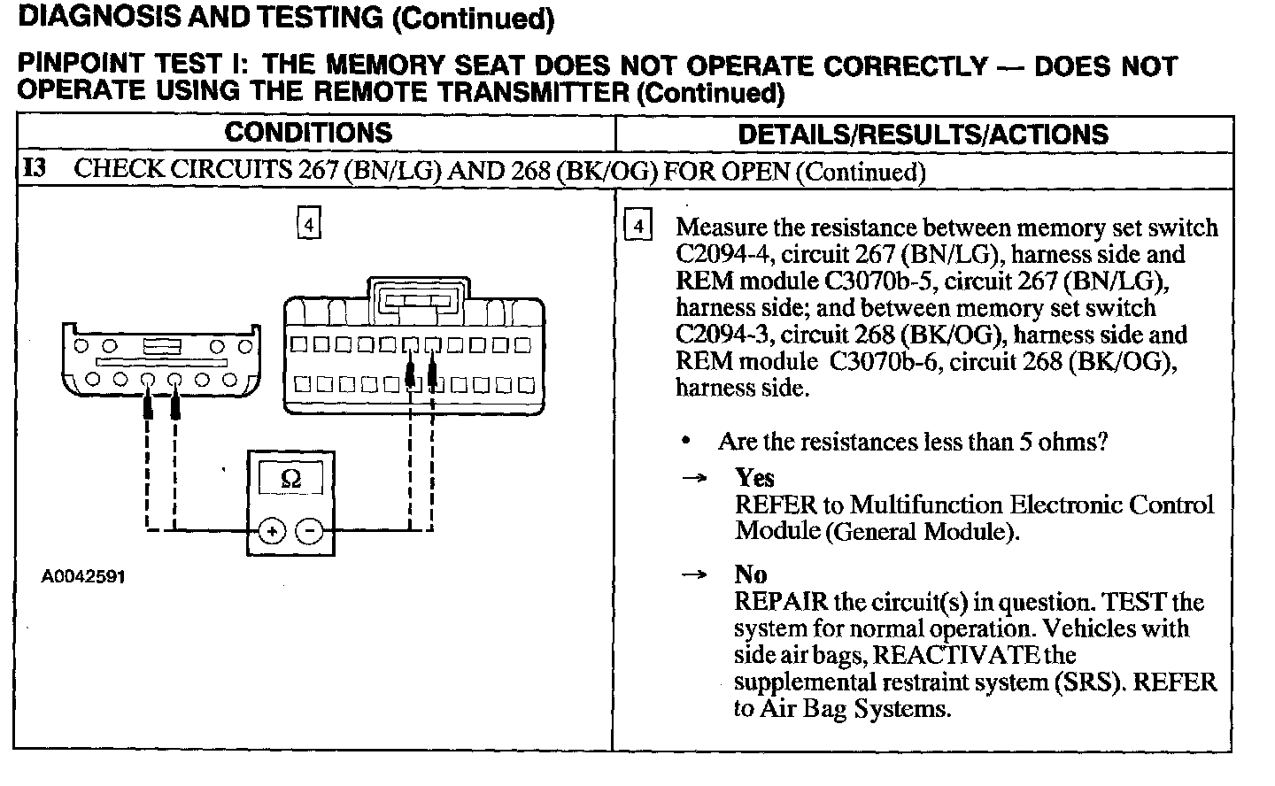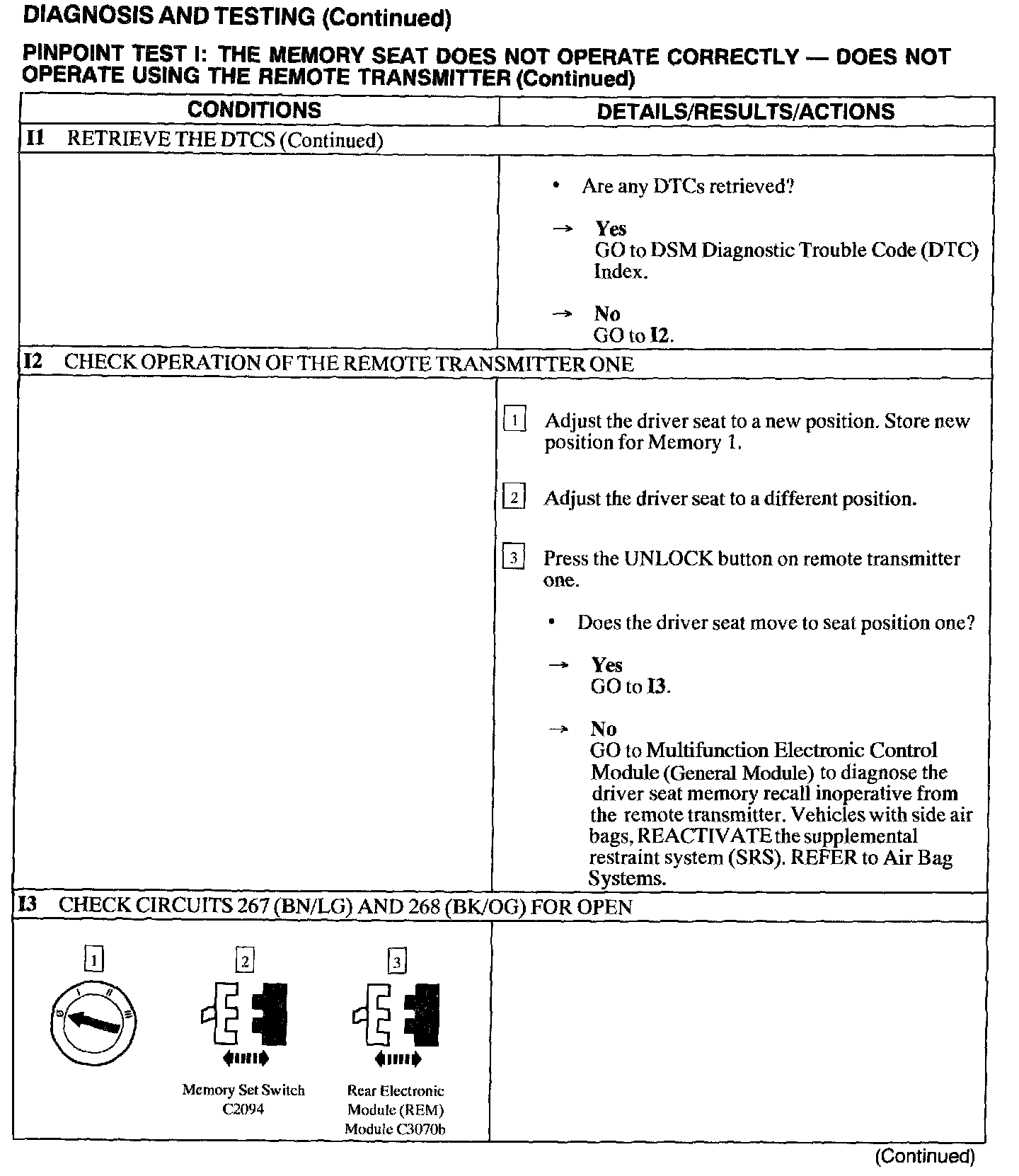 Test I: Memory Seat Does Not Operate Correctly - Does Not Operate Using The Remote Transmitter
