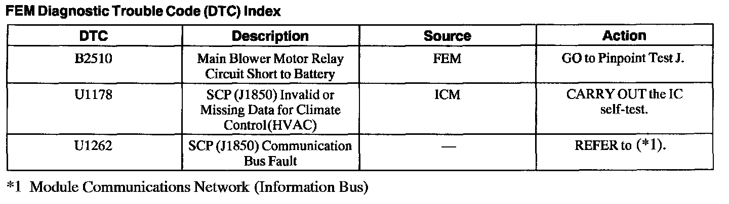 Front Electronic Module (FEM) Diagnostic Trouble Code Index