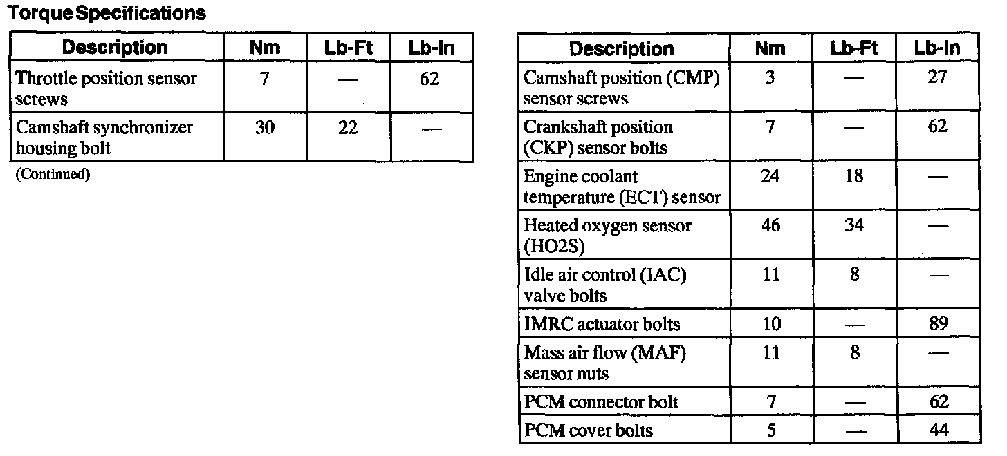 Torque Specifications: