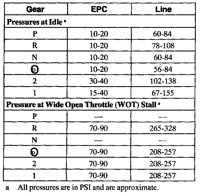 Line Pressure Chart