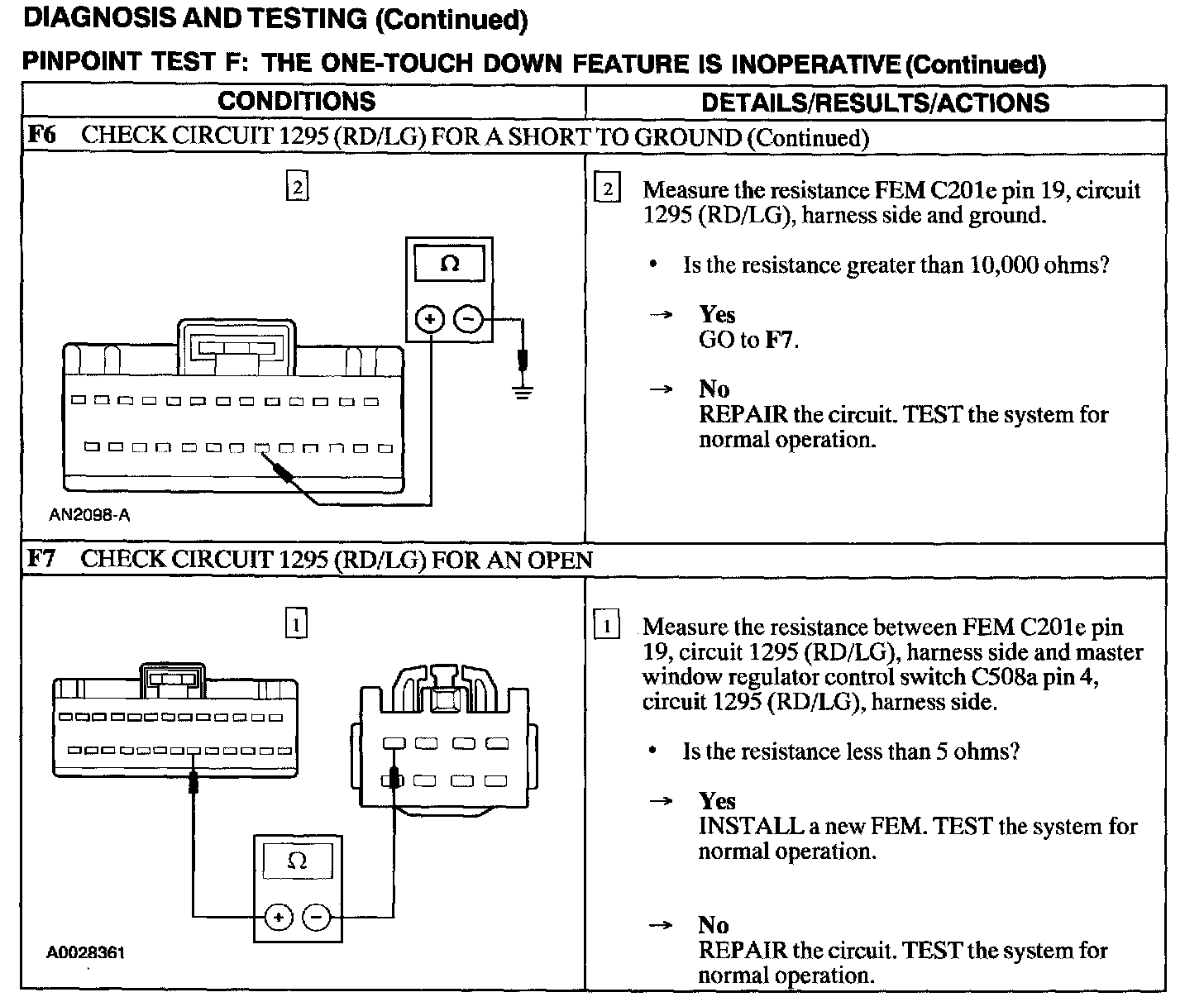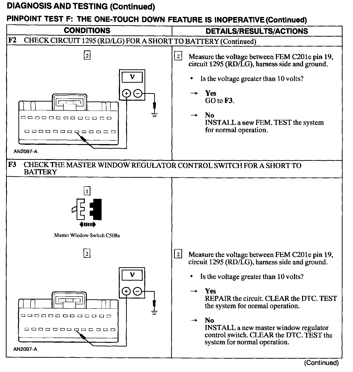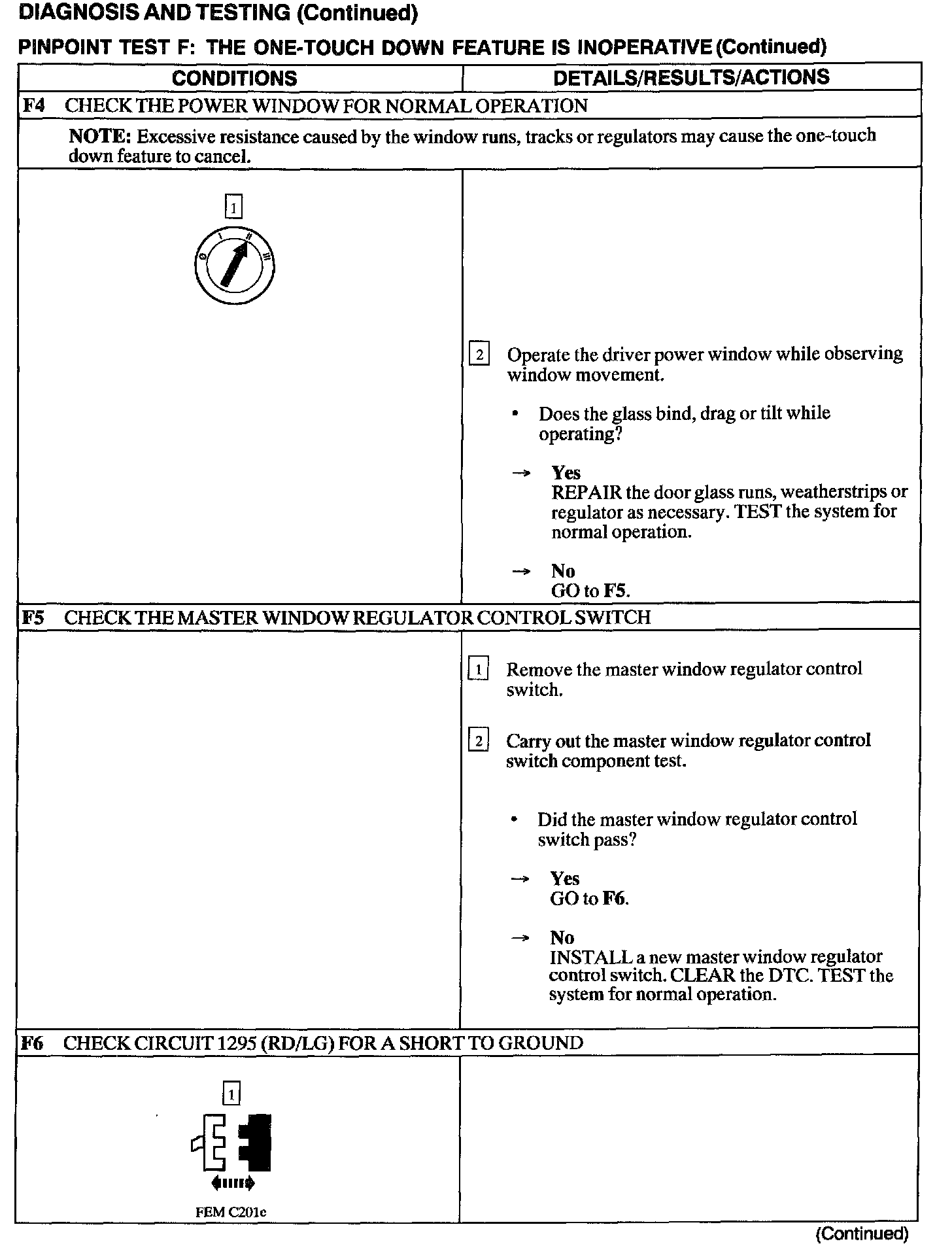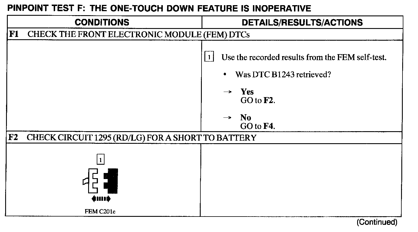Test F: One Touch Down Feature Is Inoperative