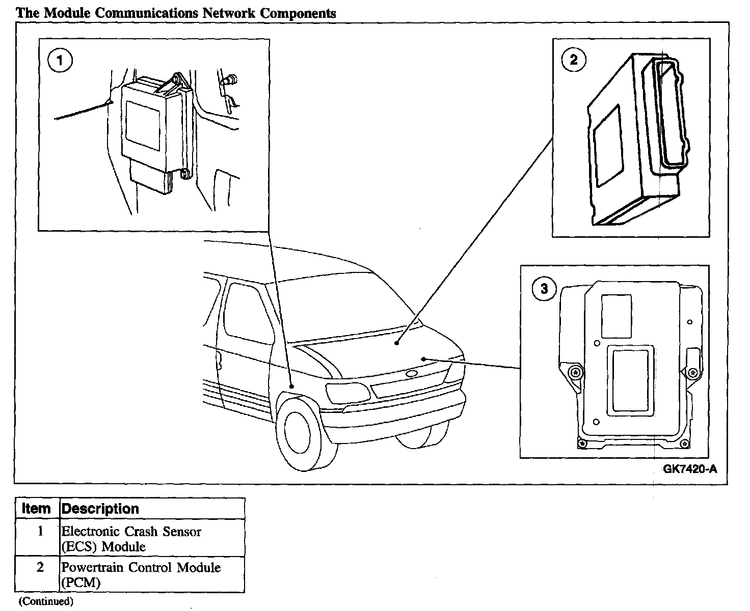 The electronic crash sensor (ECS) module is on the ISO 9141 network. The ECS controls the deployment of the air bags based on sensor input. Refer to Air Bag Systems.