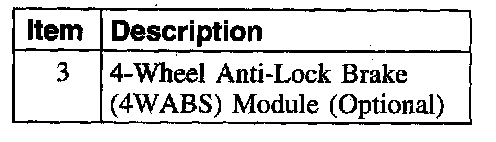 The 4-wheel anti-lock brake system (4WABS) is on the ISO 9141 network. The 4WABS controls the brake pressure to the four wheels to keep the vehicle under control while braking.