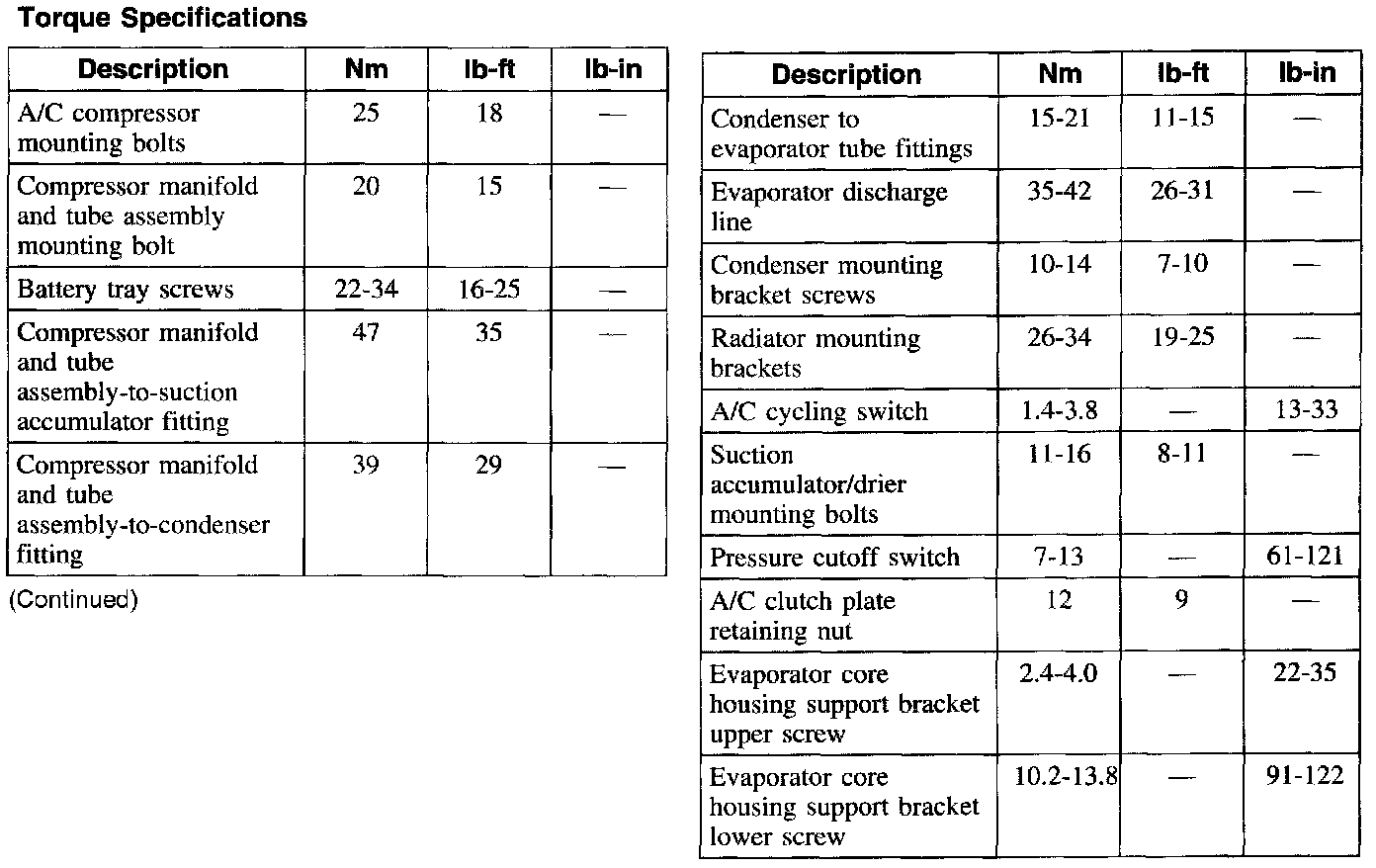 Torque Specifications:
