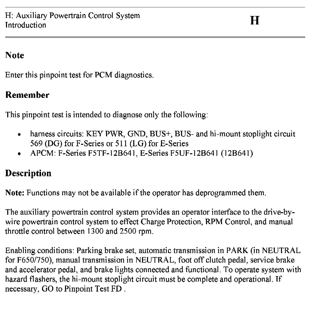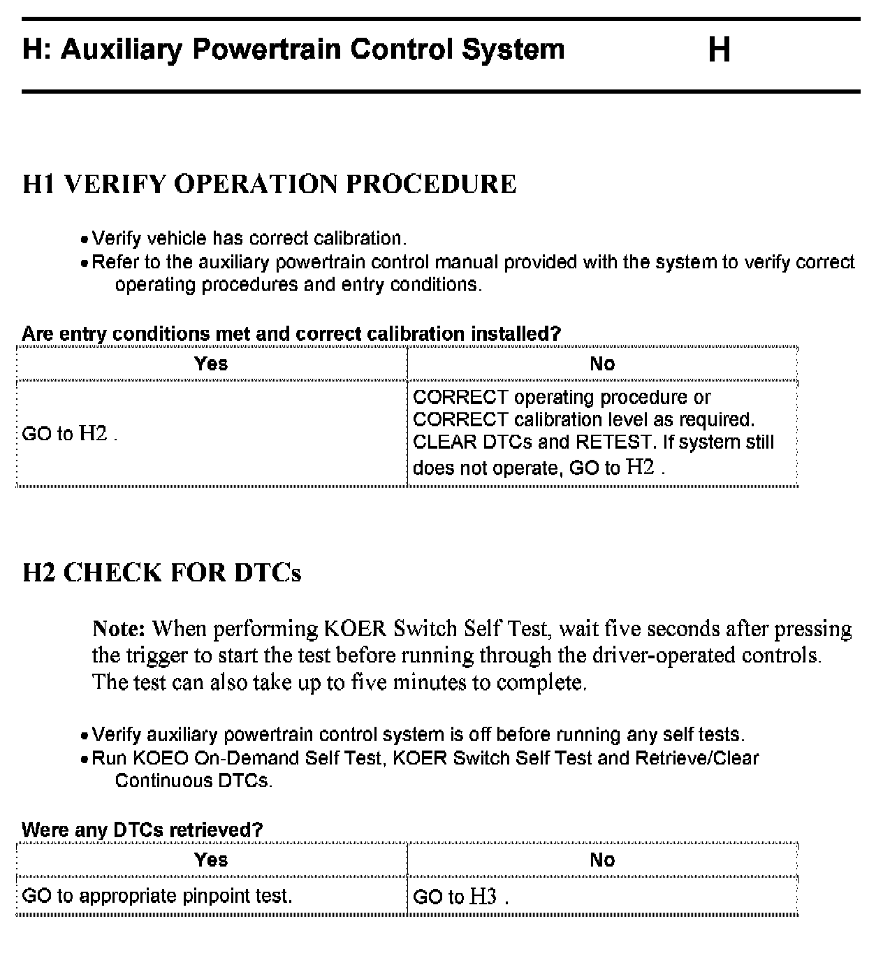 Test H: Auxiliary Powertrain Control System