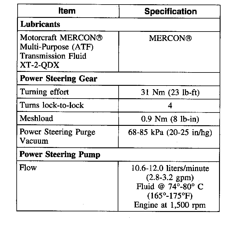 Steering System - General Specifications