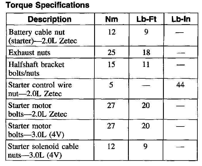 Torque Specifications: