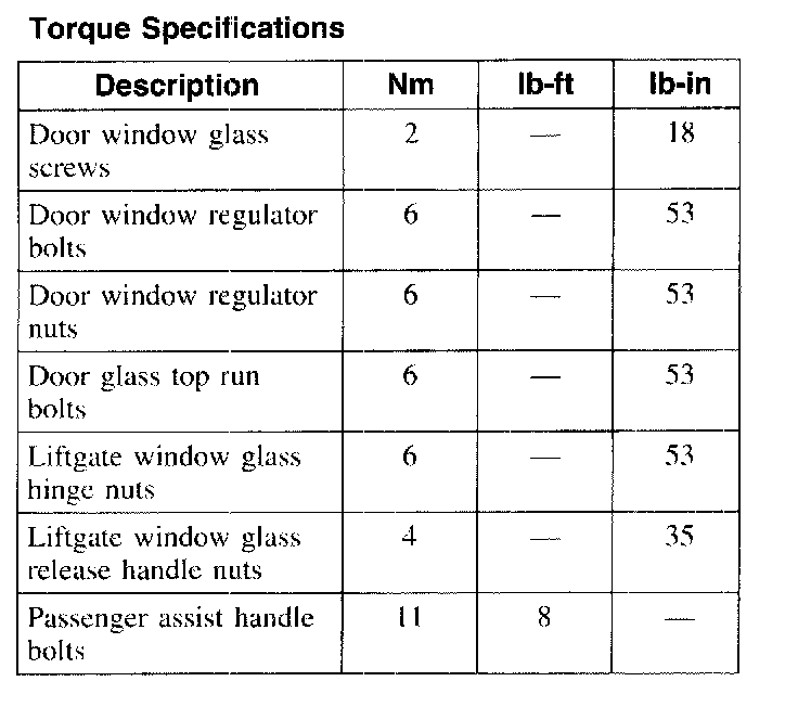 Torque Specifications: