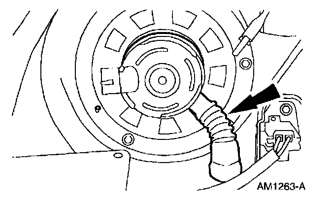 7. Remove the blower motor ventilation tube.