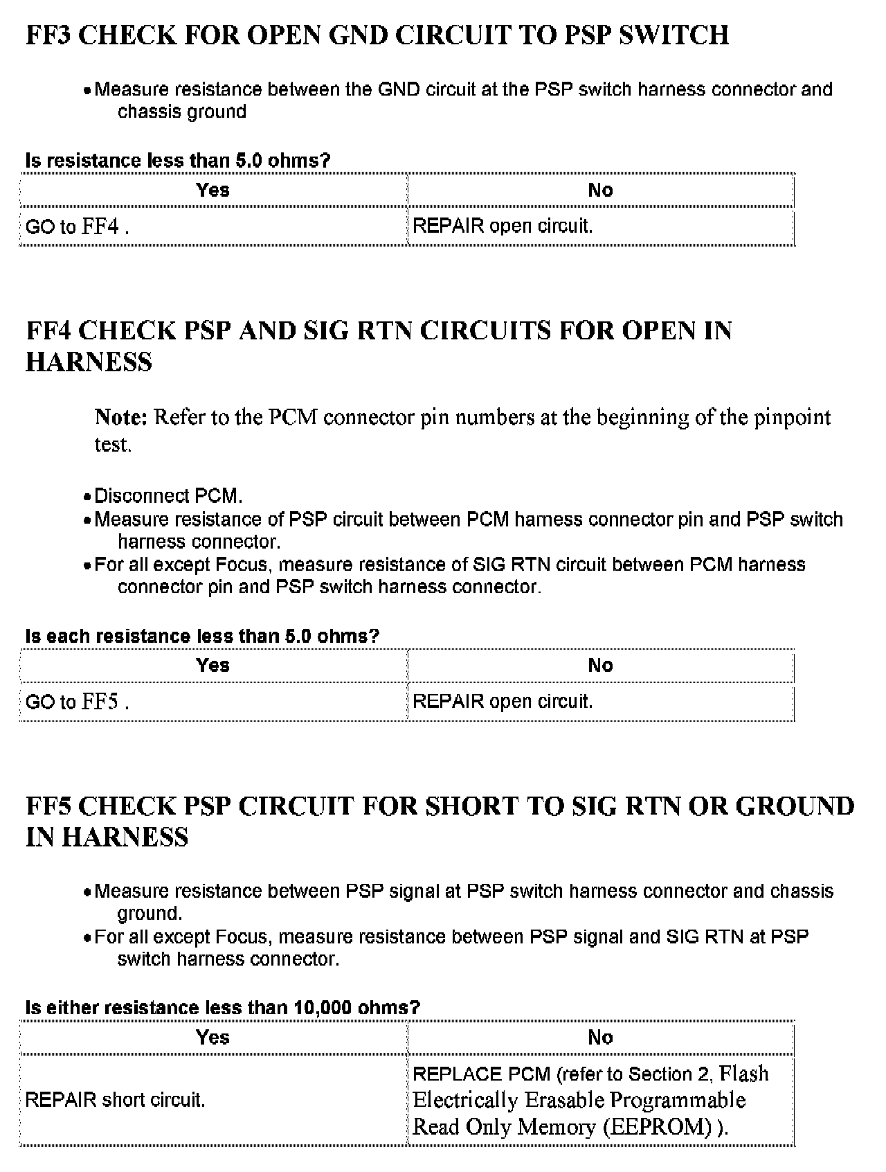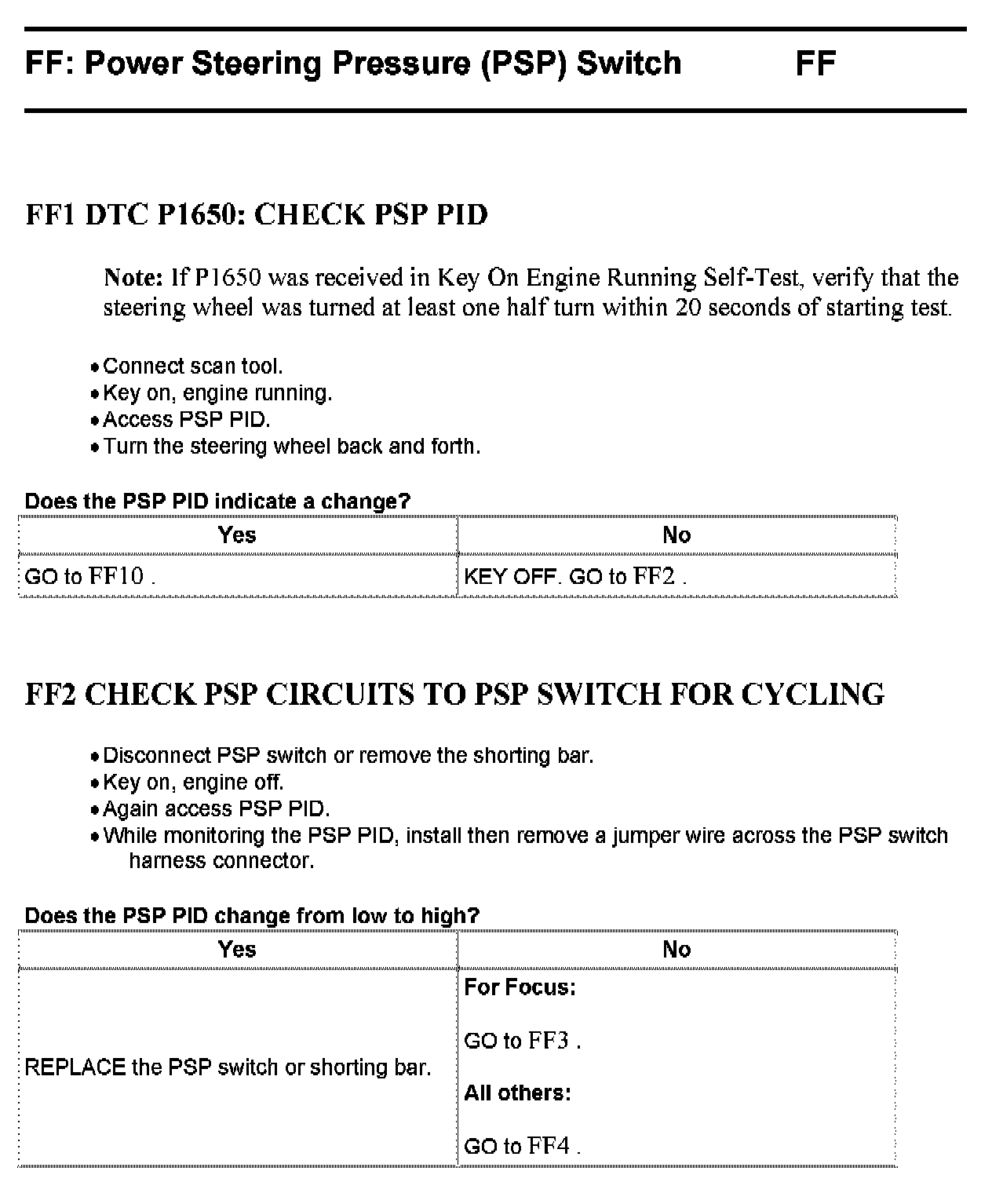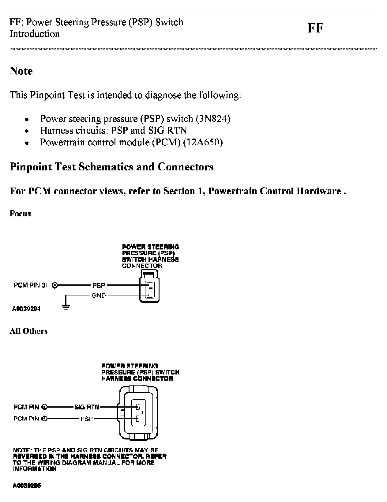 Tests FF: Power Steering Pressure (PSP) Switch