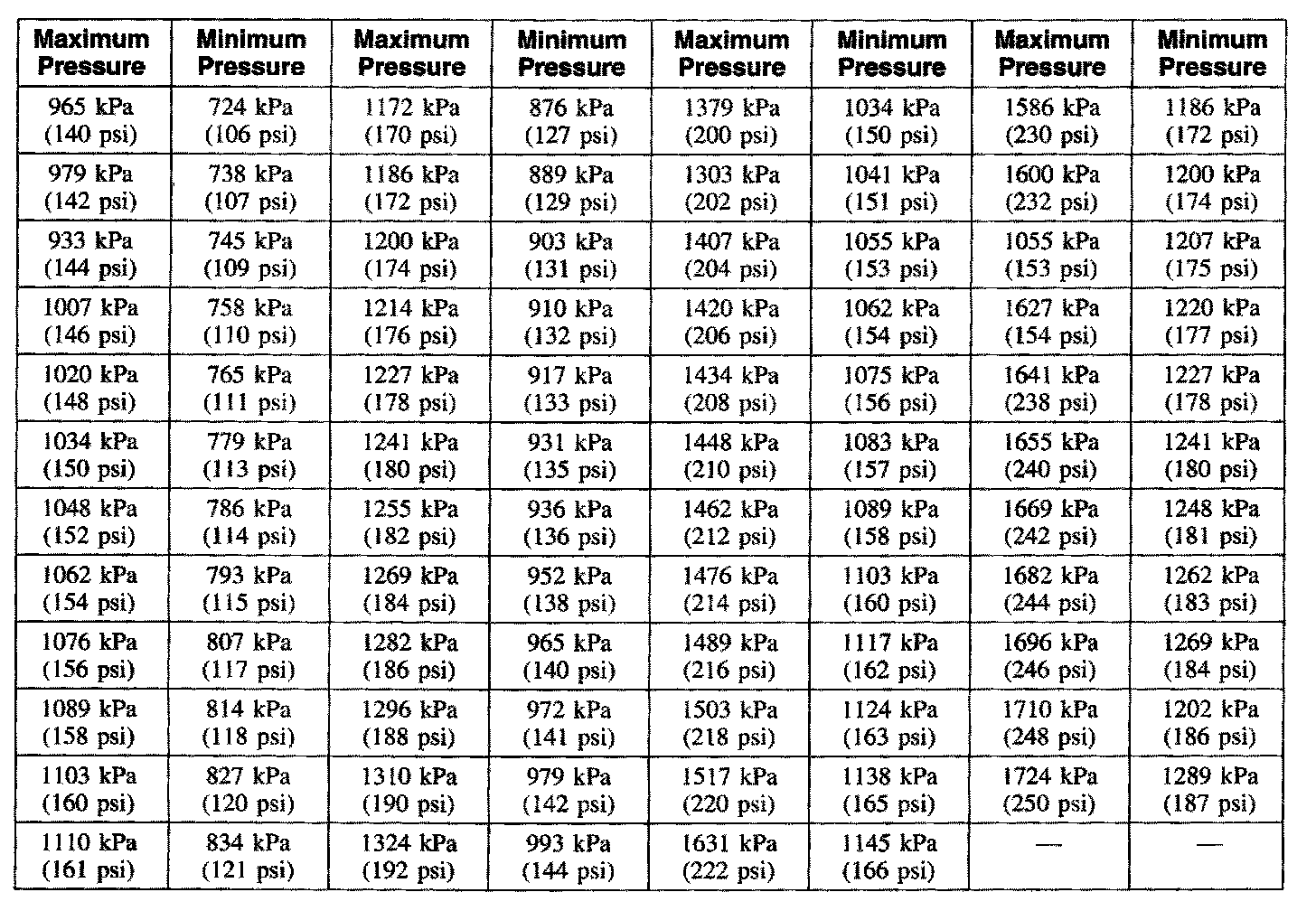 Compression Pressure Limit Chart