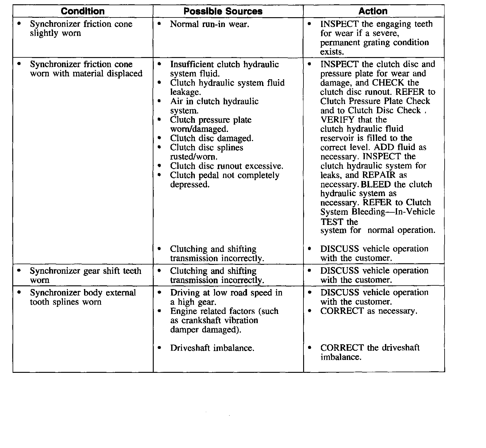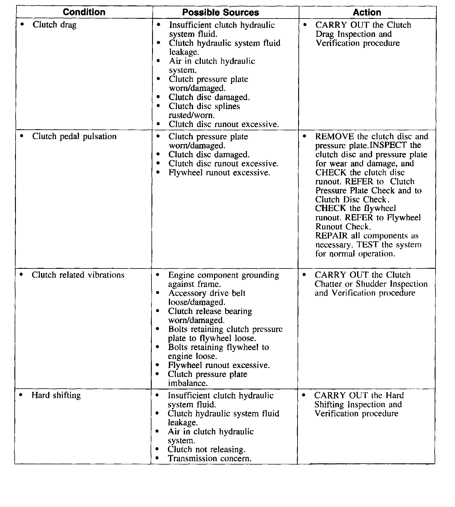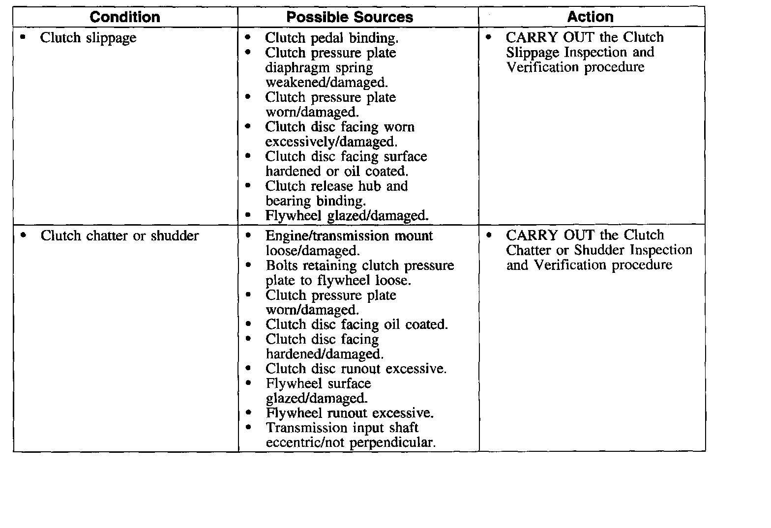 Symptom Chart-Clutch Transmission and Operation