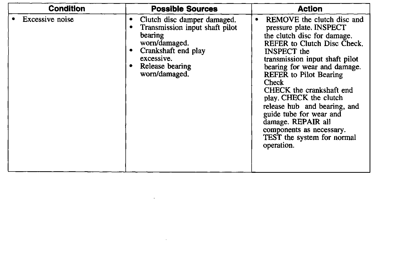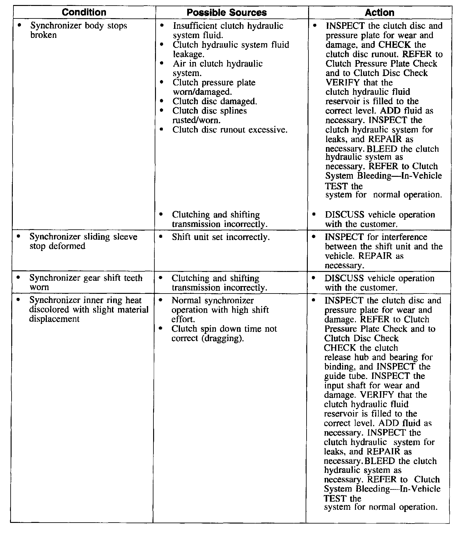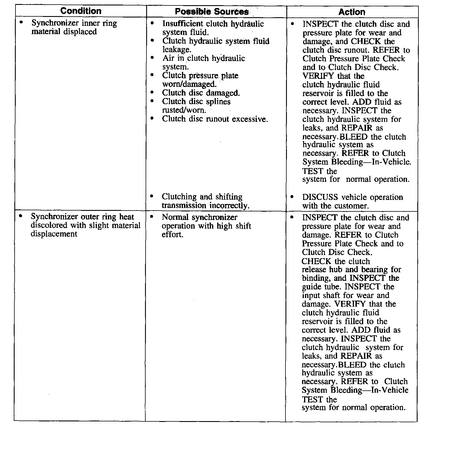 Symptom Chart-Clutch Transmission and Operation
