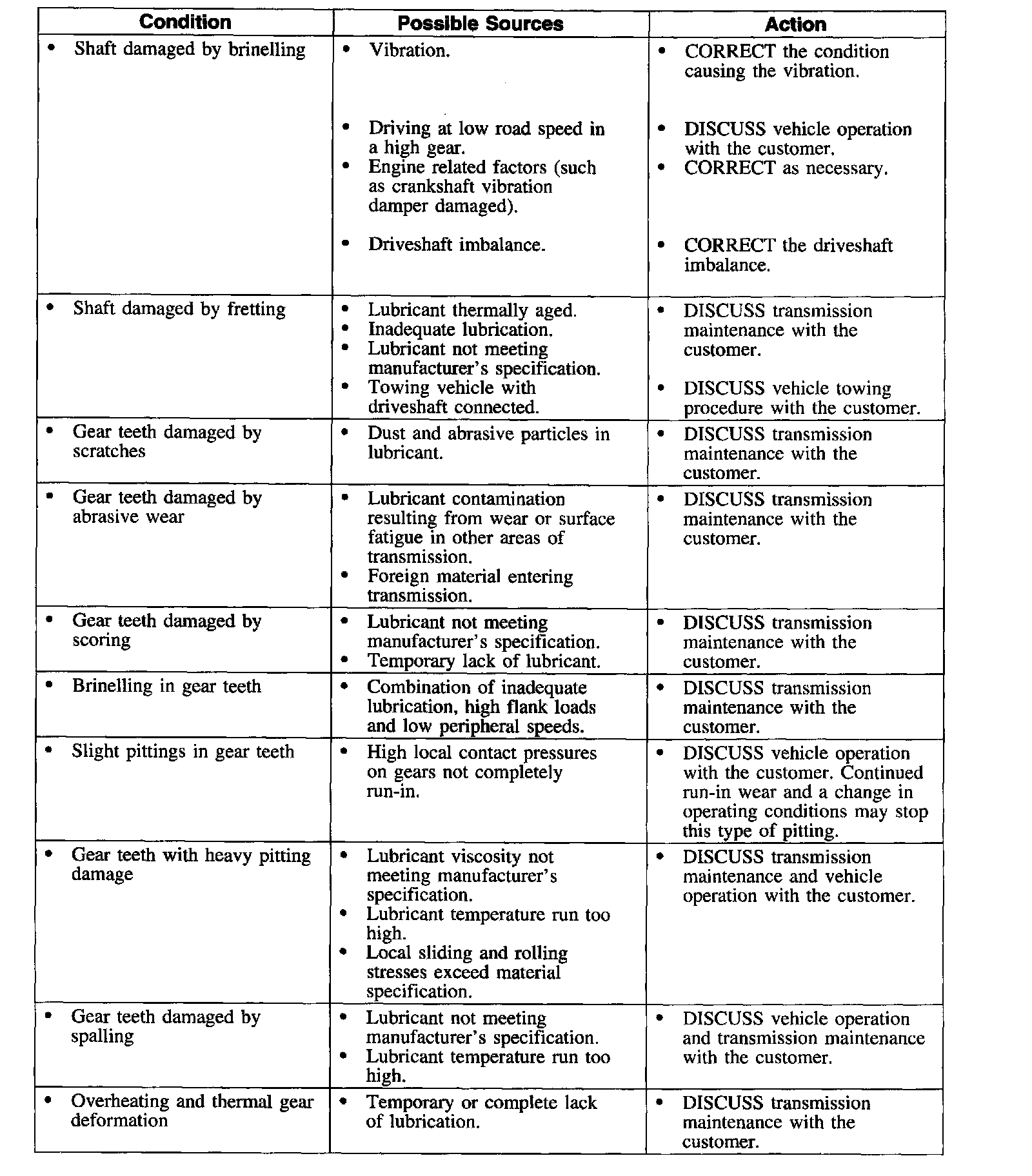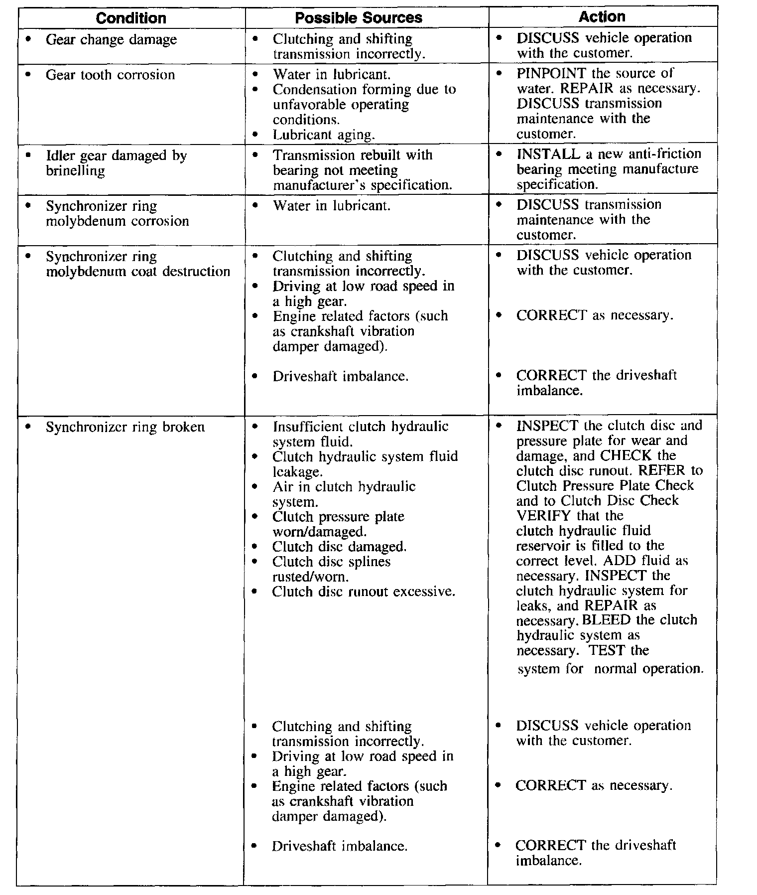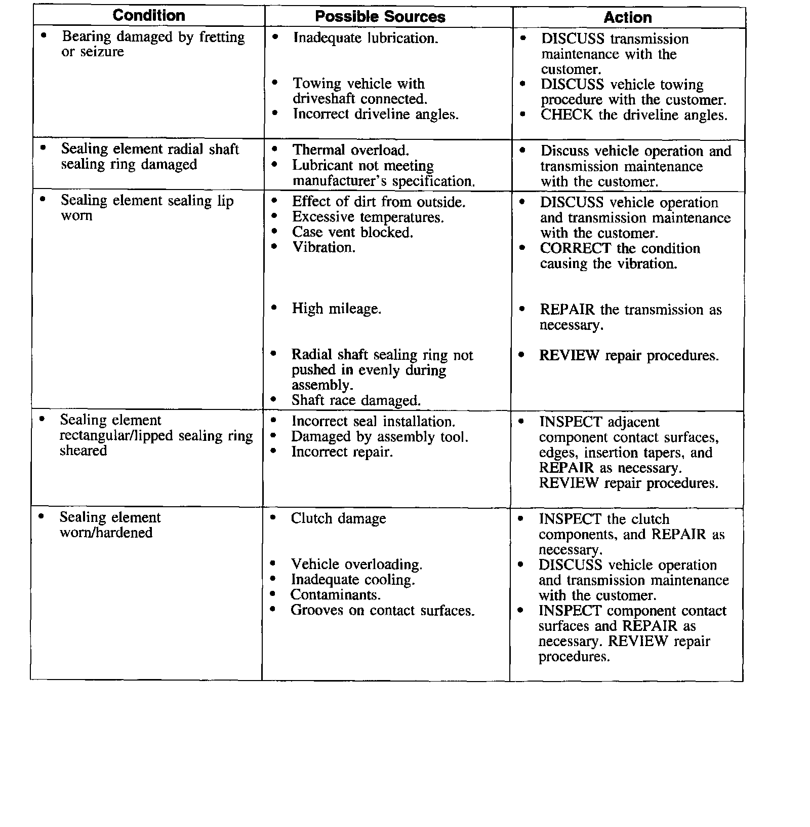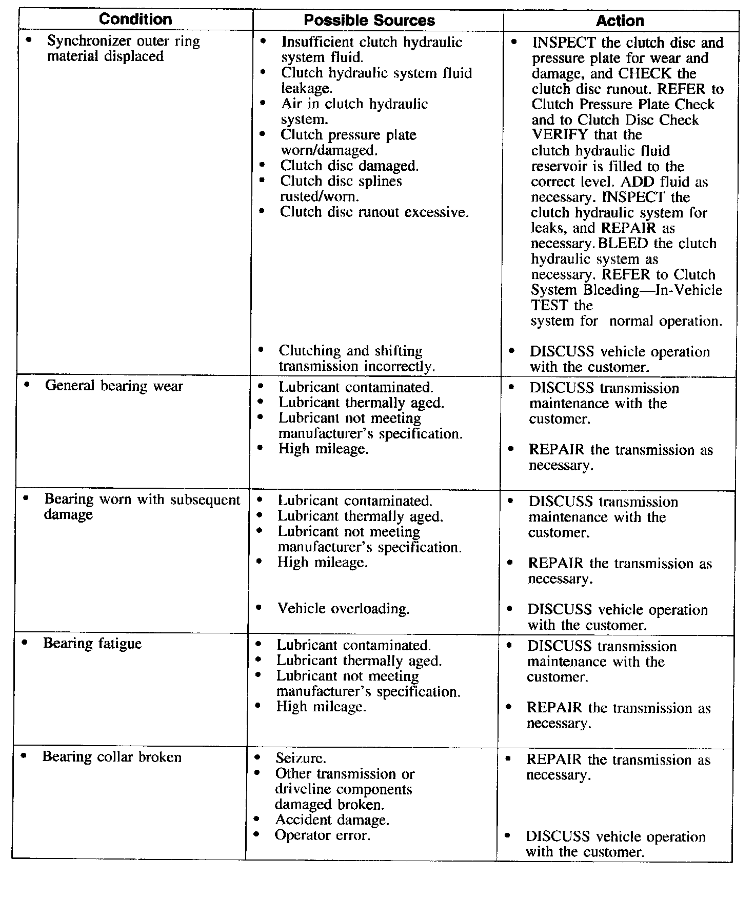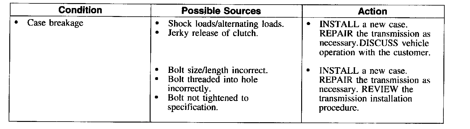 Symptom Chart-Transmission Component Wear and Damage