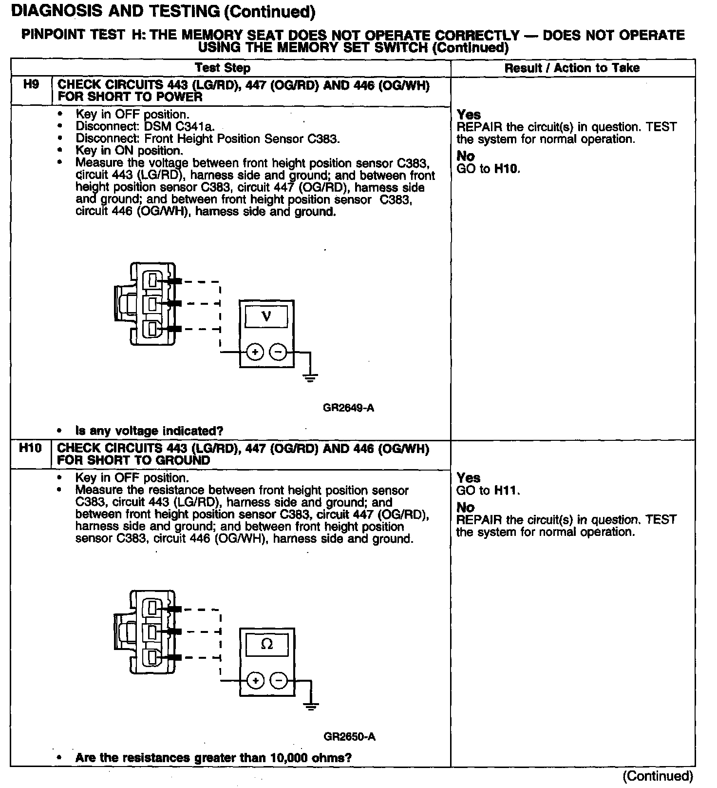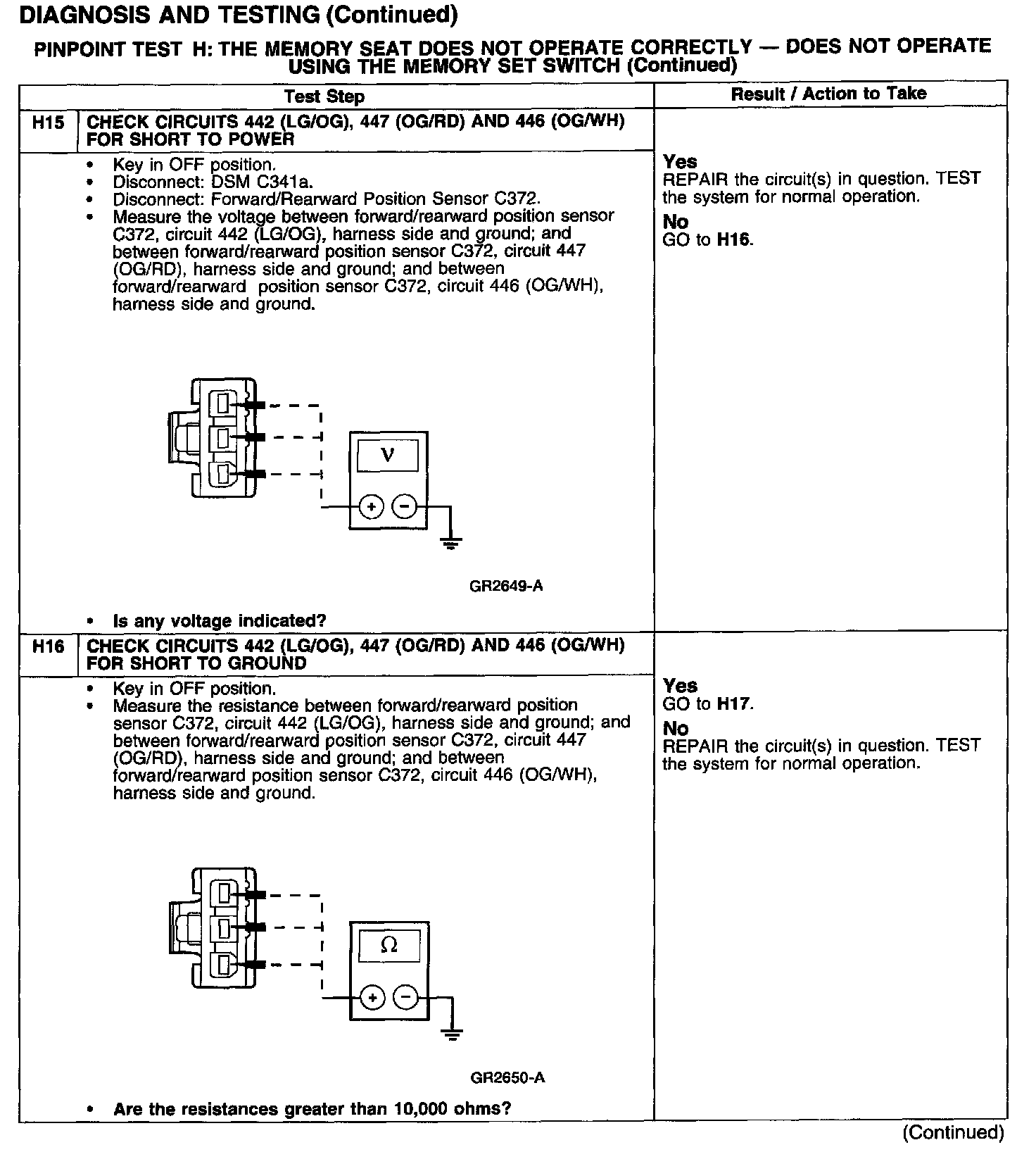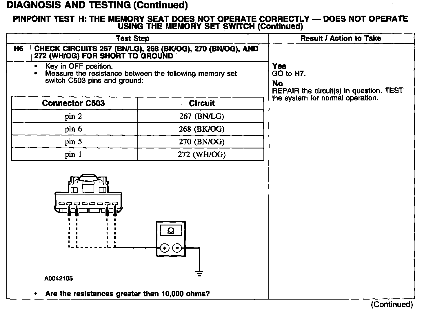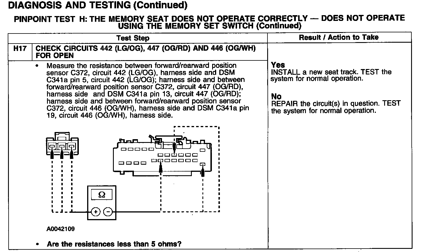 PINPOINT TEST H: THE MEMORY SEAT DOES NOT OPERATE CORRECTLY - DOES NOT OPERATE USING THE MEMORY SET SWITCH