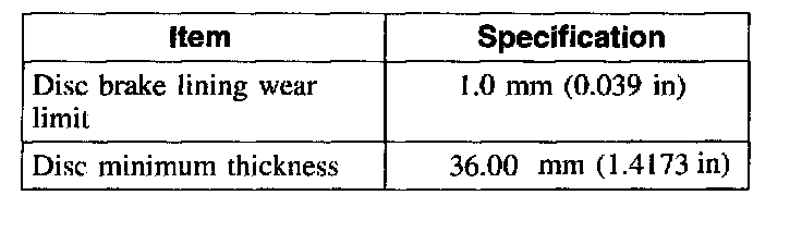 Disc Wear Specifications: