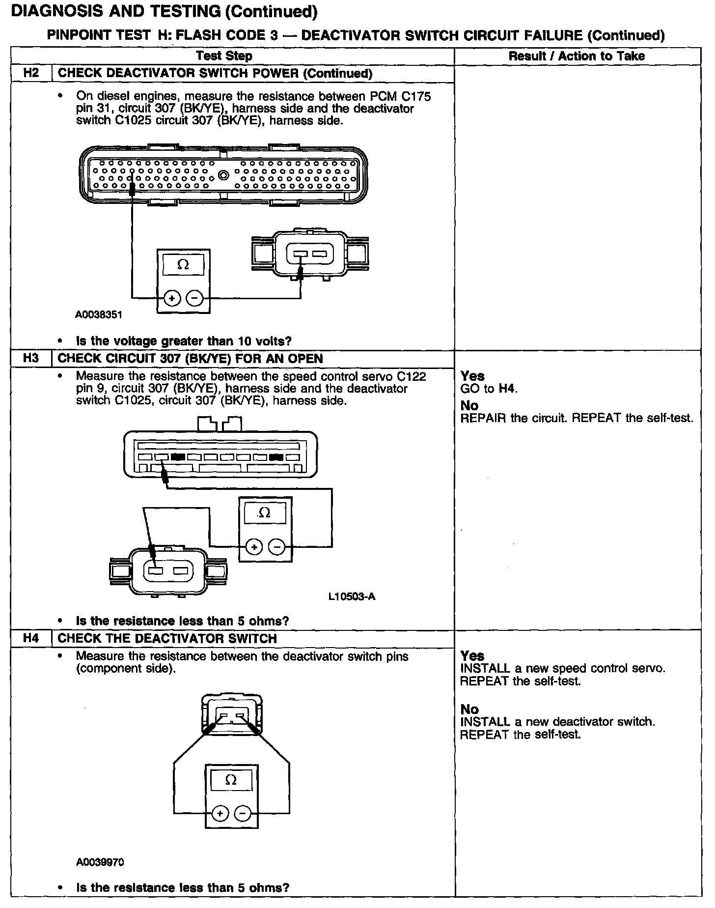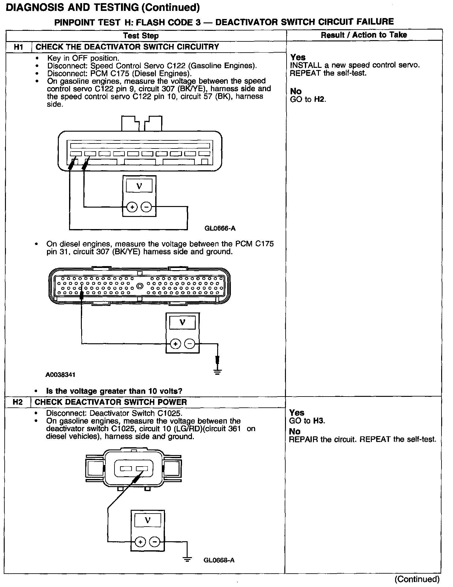 PINPOINT TEST H: FLASH CODE 3 - DEACTIVATOR SWITCH CIRCUIT FAILURE