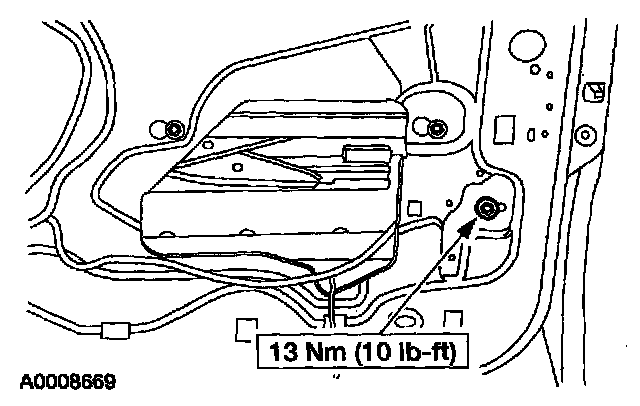 1. NOTE: Make sure the door glass is seated in the glass run channel and the rear glass run bolt is positioned all the way forward prior to tightening the rear glass run bolt.