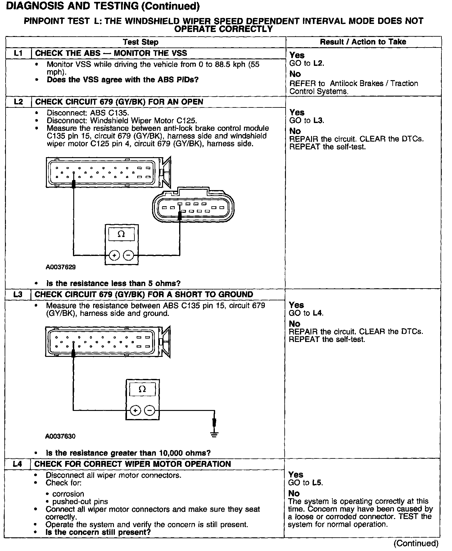 PINPOINT TEST L: THE WINDSHIELD WIPER SPEED DEPENDENT INTERVAL MODE DOES NOT OPERATE CORRECTLY