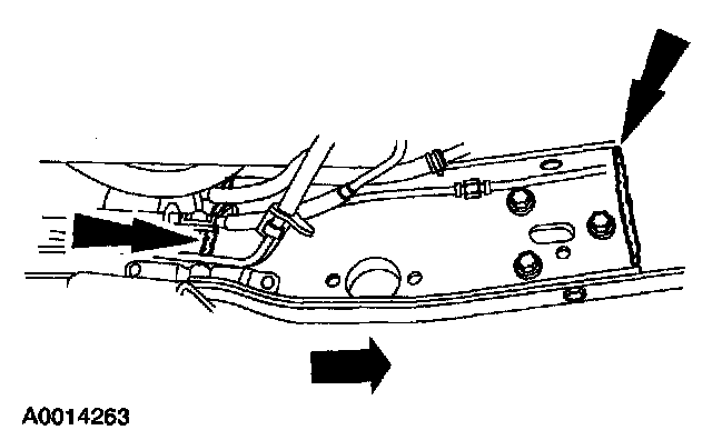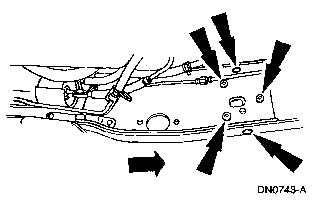 5 Remove the exhaust system components as necessary to access the front stub-to-reinforcement rivets.