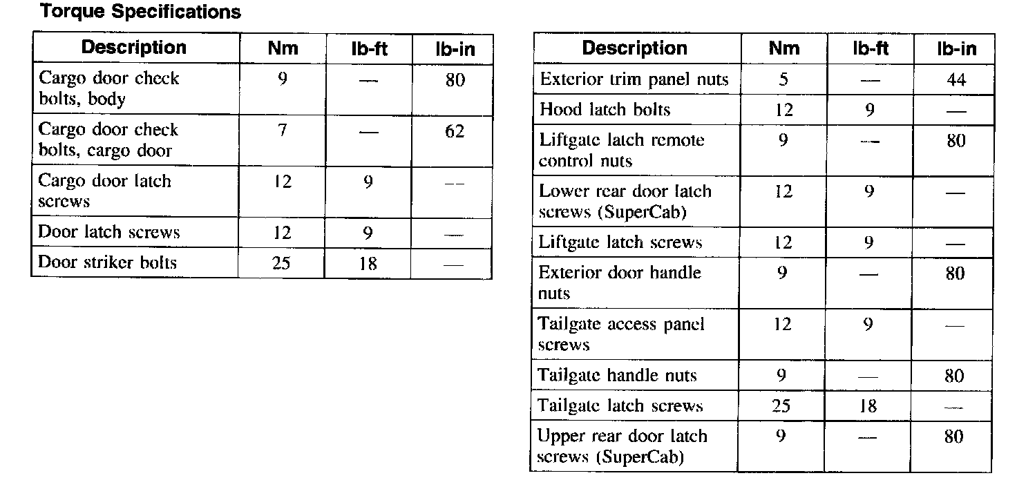 Torque Specifications: