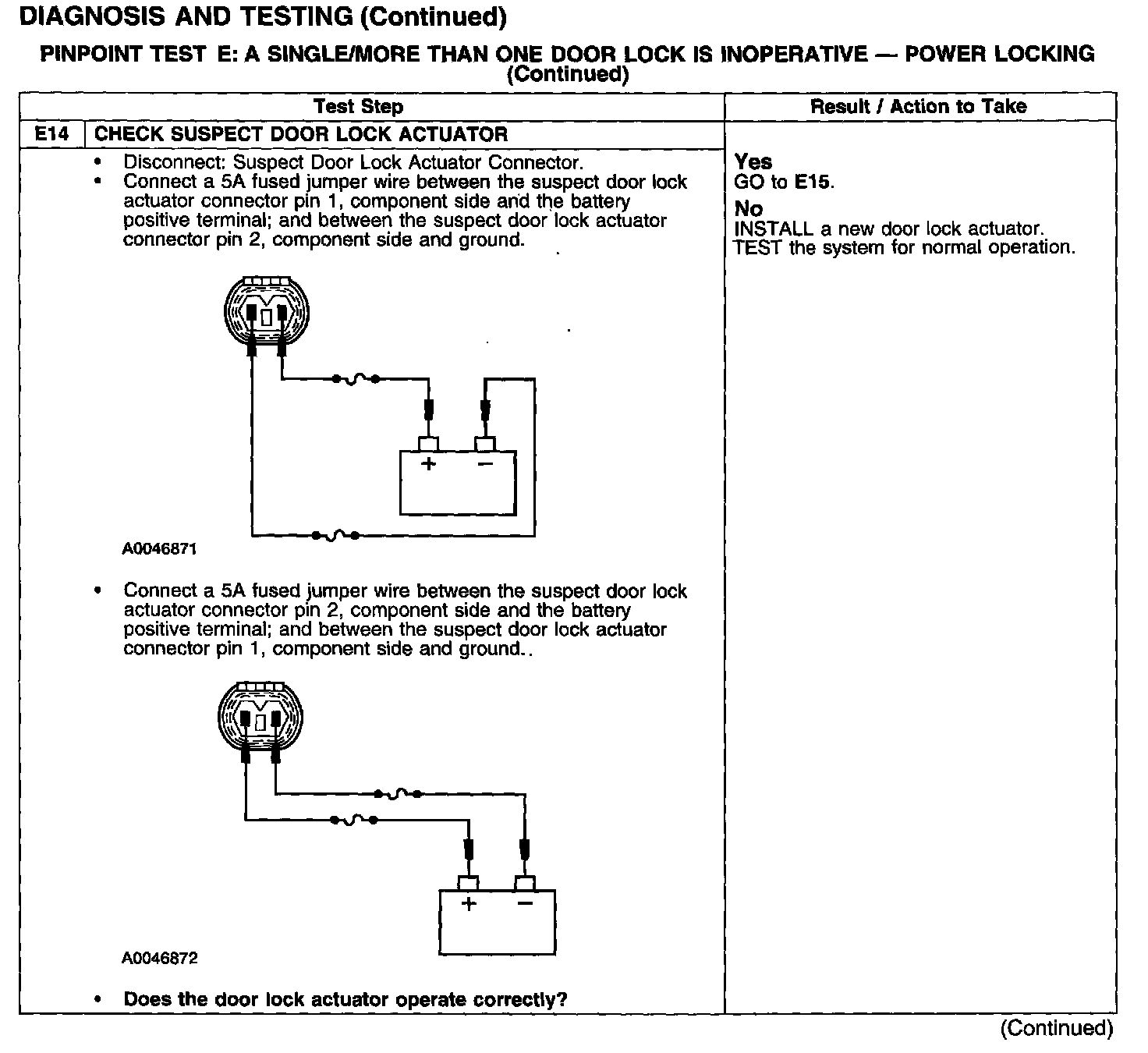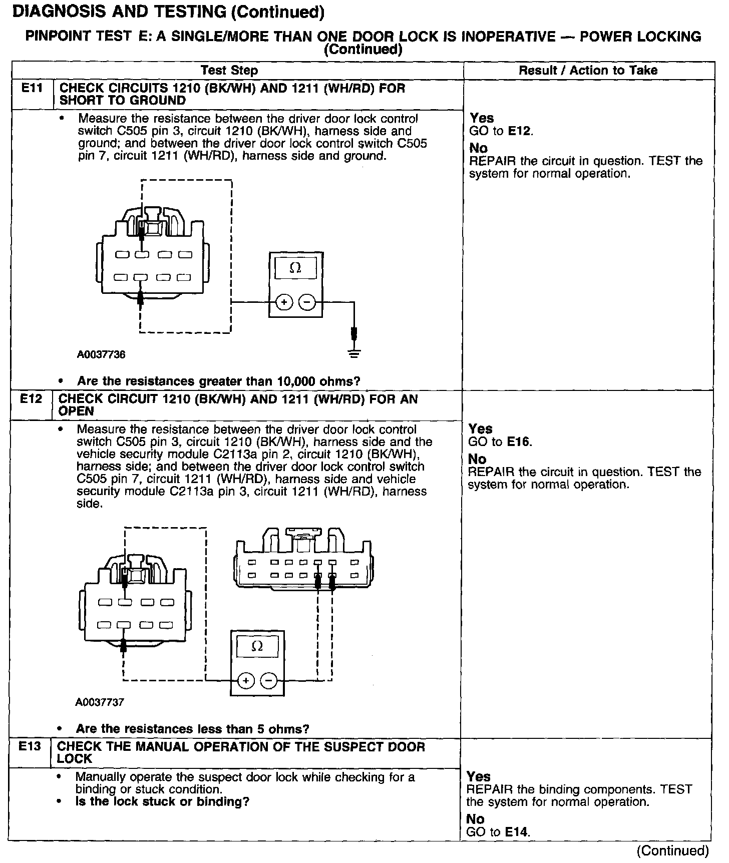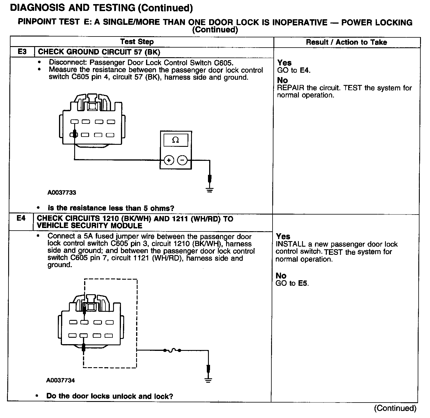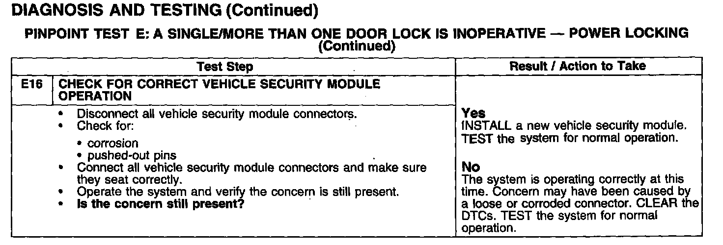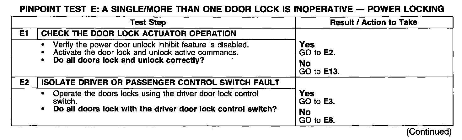 PINPOINT TEST E: A SINGLE/MORE THAN ONE DOOR LOCK IS INOPERATIVE - POWER LOCKING