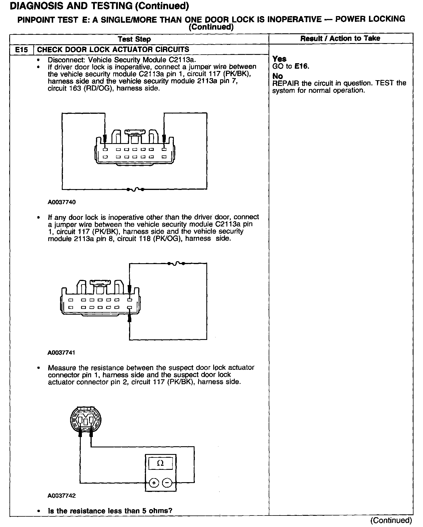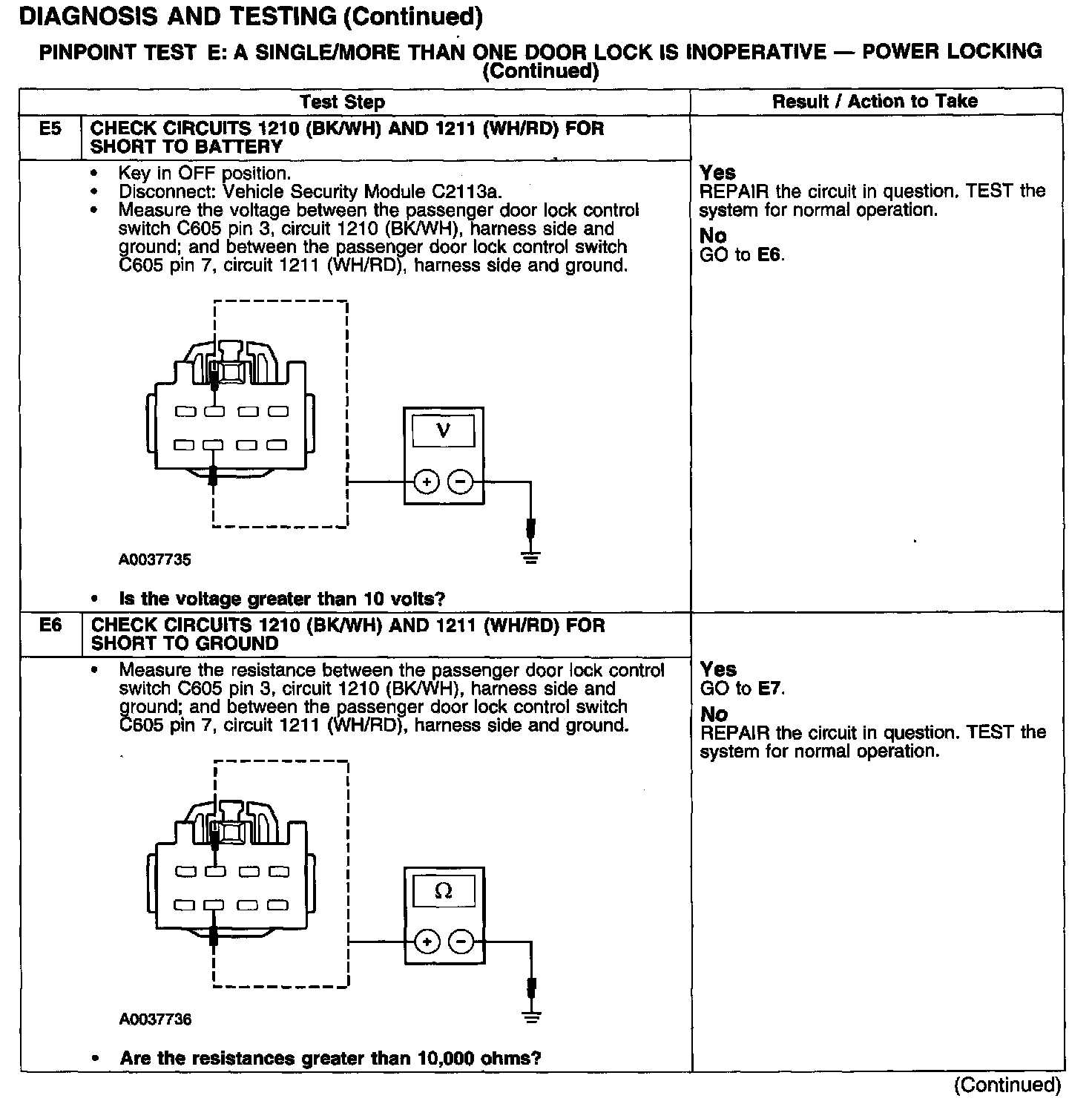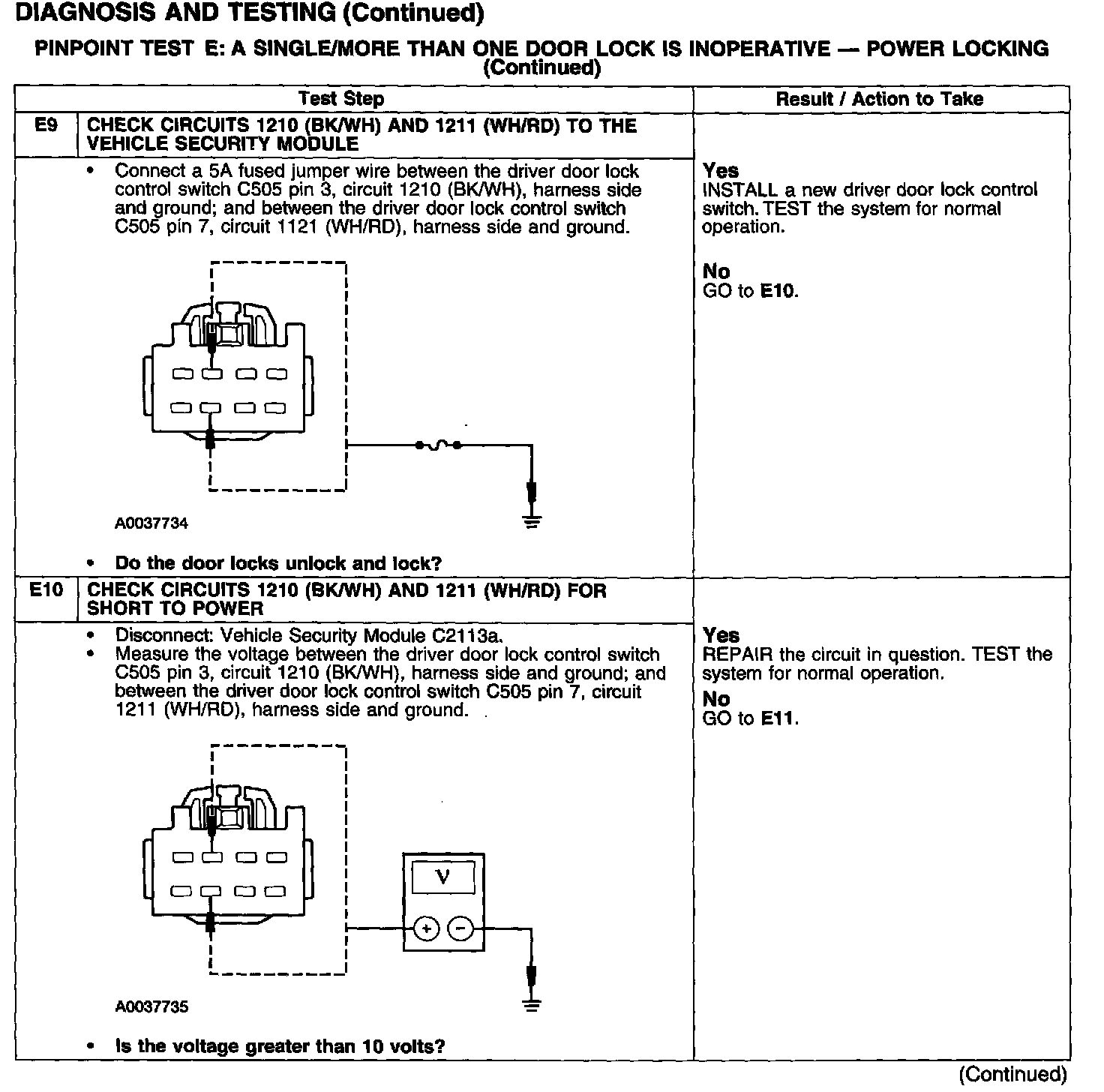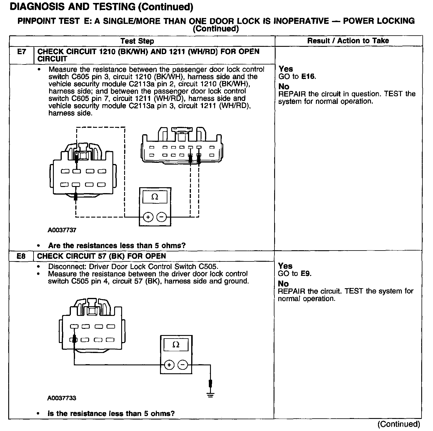 PINPOINT TEST E: A SINGLE/MORE THAN ONE DOOR LOCK IS INOPERATIVE - POWER LOCKING