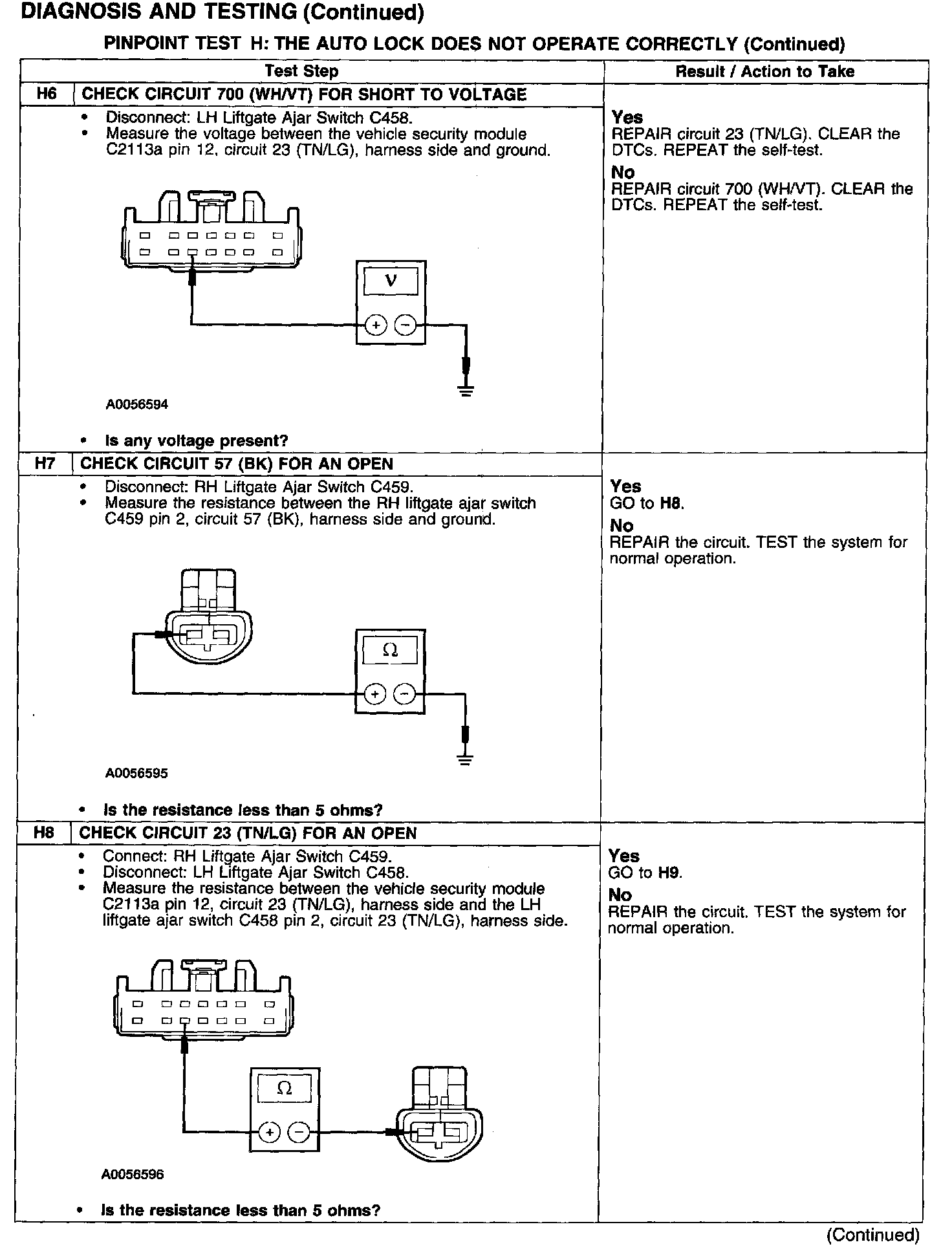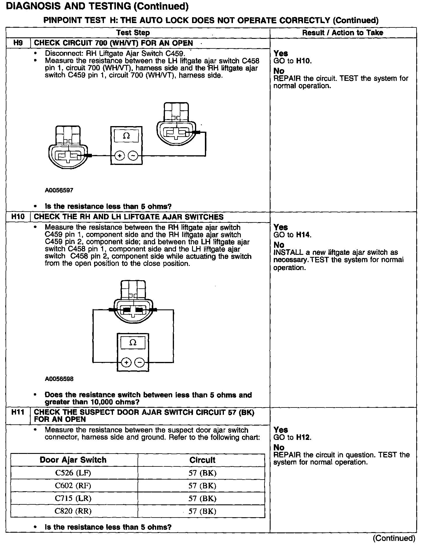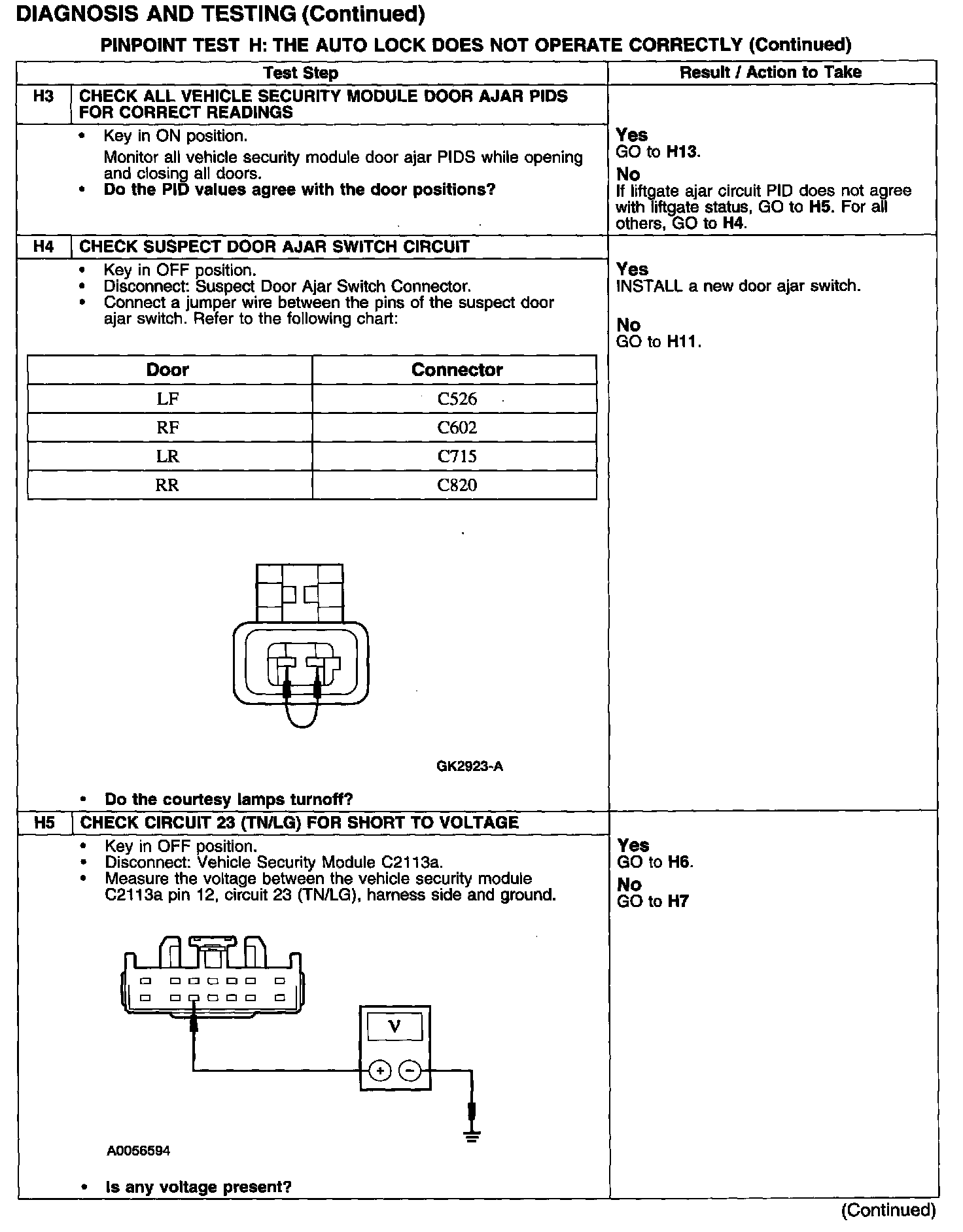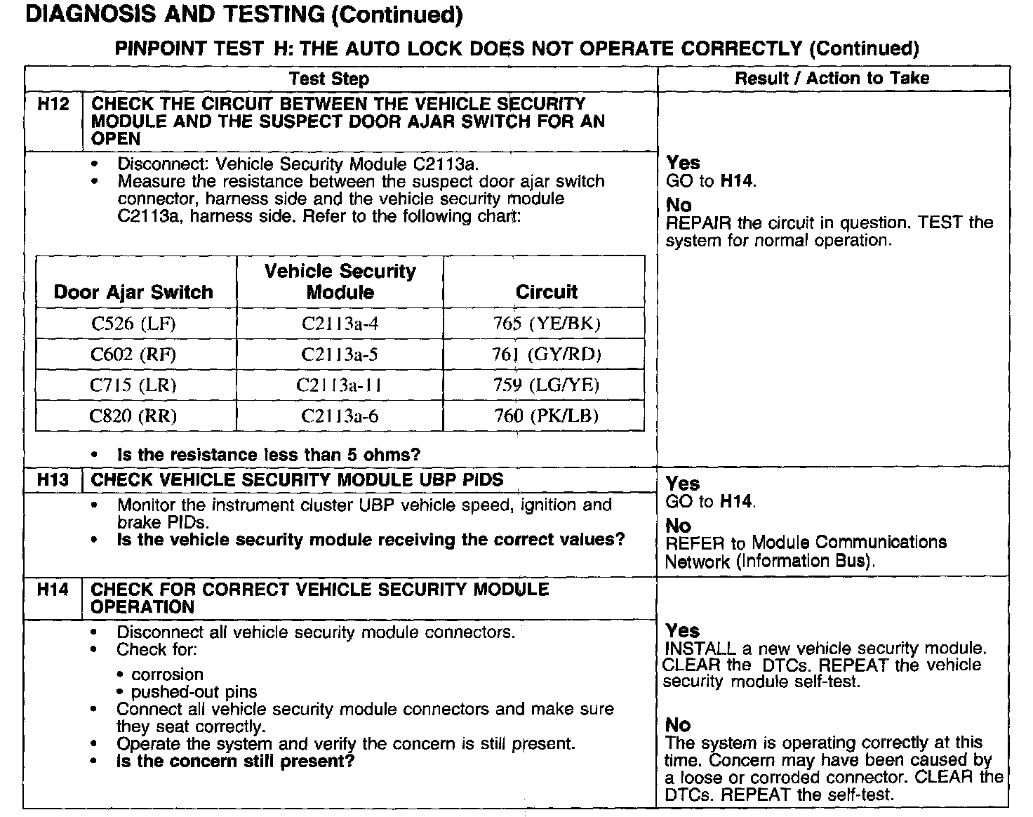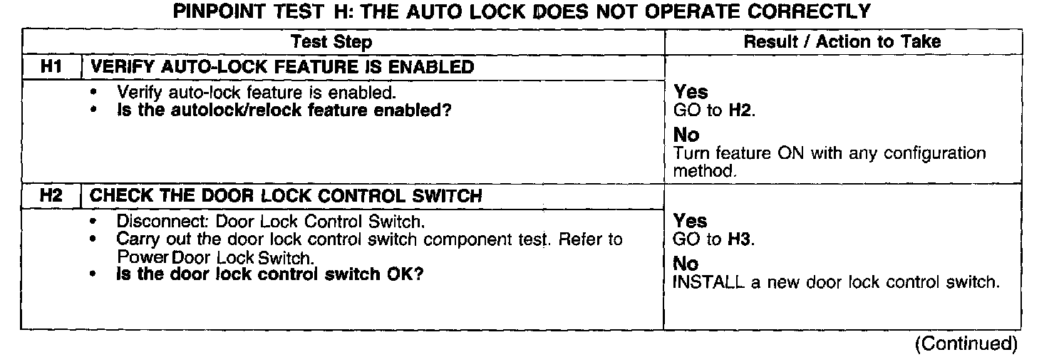PINPOINT TEST H: THE AUTO LOCK DOES NOT OPERATE CORRECTLY