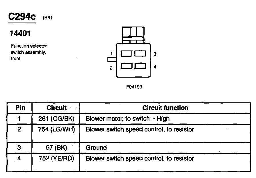 Function Selector Switch Assembly, Front