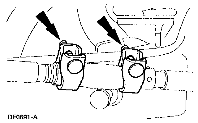 7. Position the LH adjusting sleeve clamp opening upward within 45 degrees of vertical. Tighten the nuts.