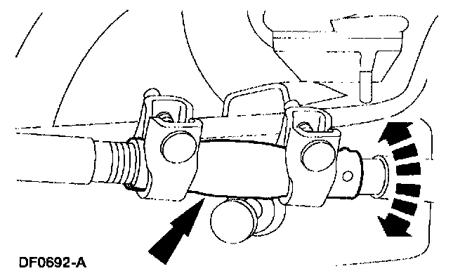 2. Turn the engine off, and hold the steering wheel in the straight-forward position by attaching a rigid link from the steering wheel to the brake pedal.