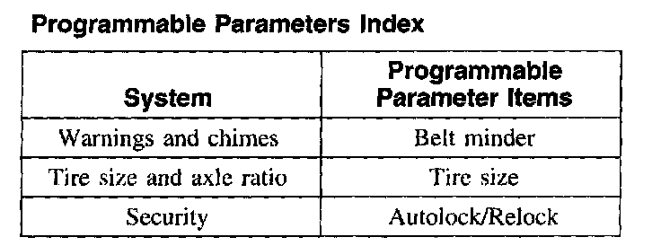 Programmable Parameters Index: